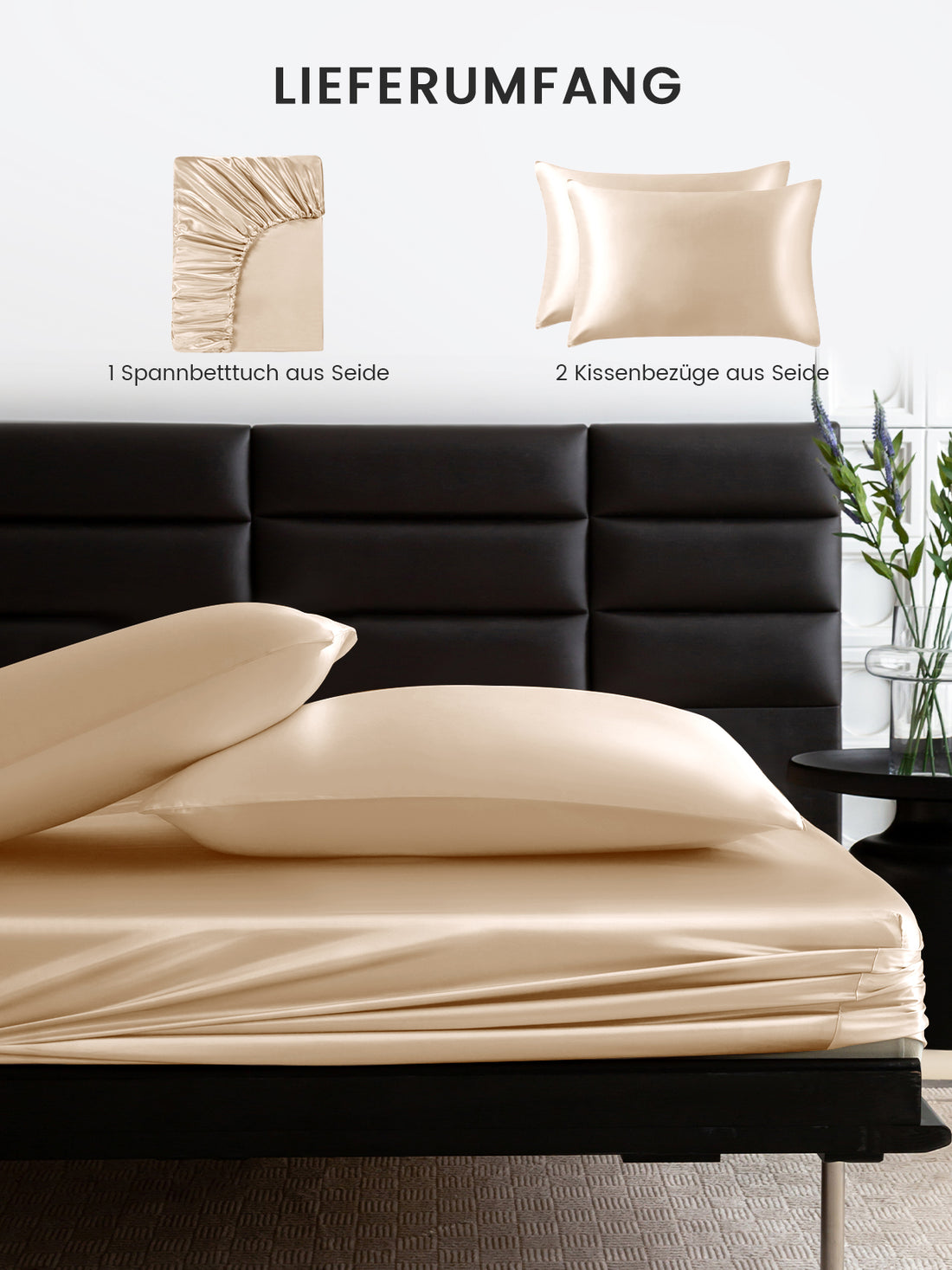 Spannbettlaken Set 25 Momme Seide 3 Teile Square KissenSpannbettlaken Set 25 Momme Seide 3 Teile Square Kissen- Regulärer Preis