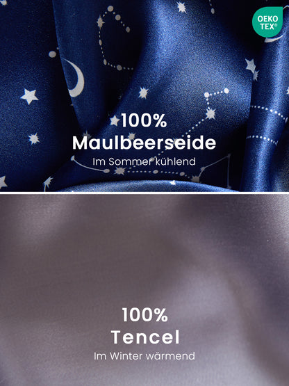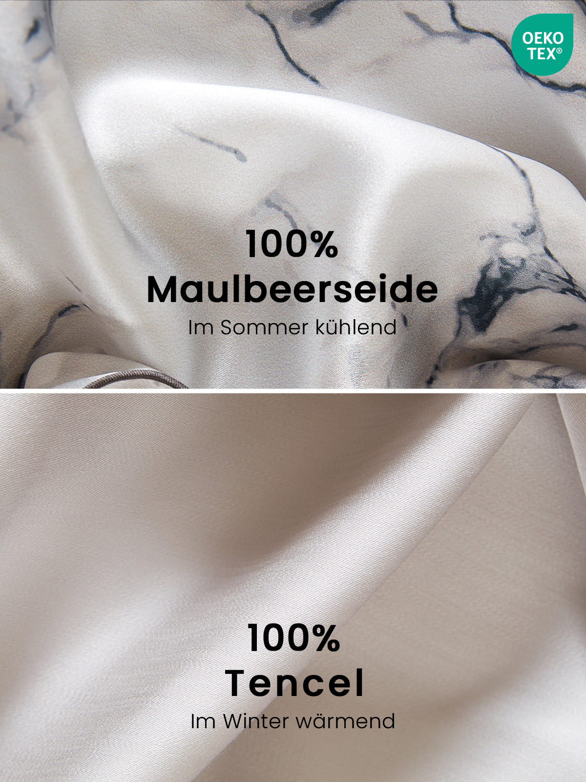Spezielles Kissenbezug-Design!! Seite A besteht aus 19 Momme Seide, Seite B aus organischem Tencel-Material.