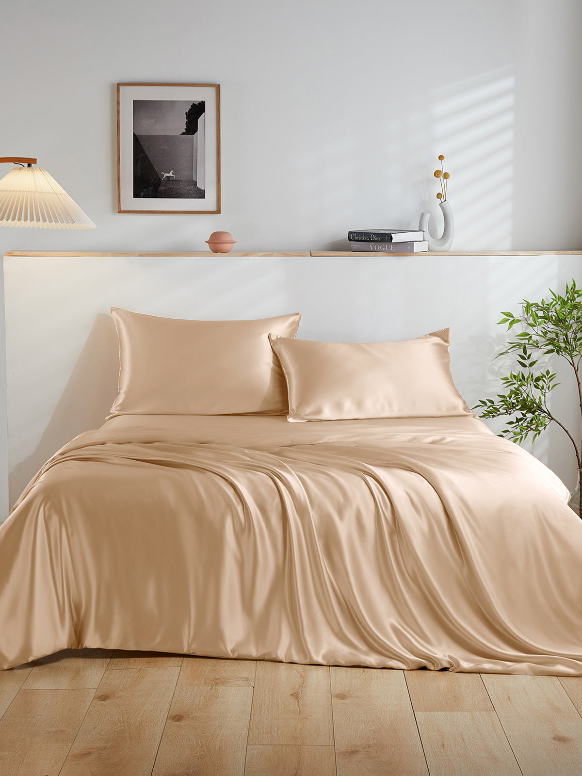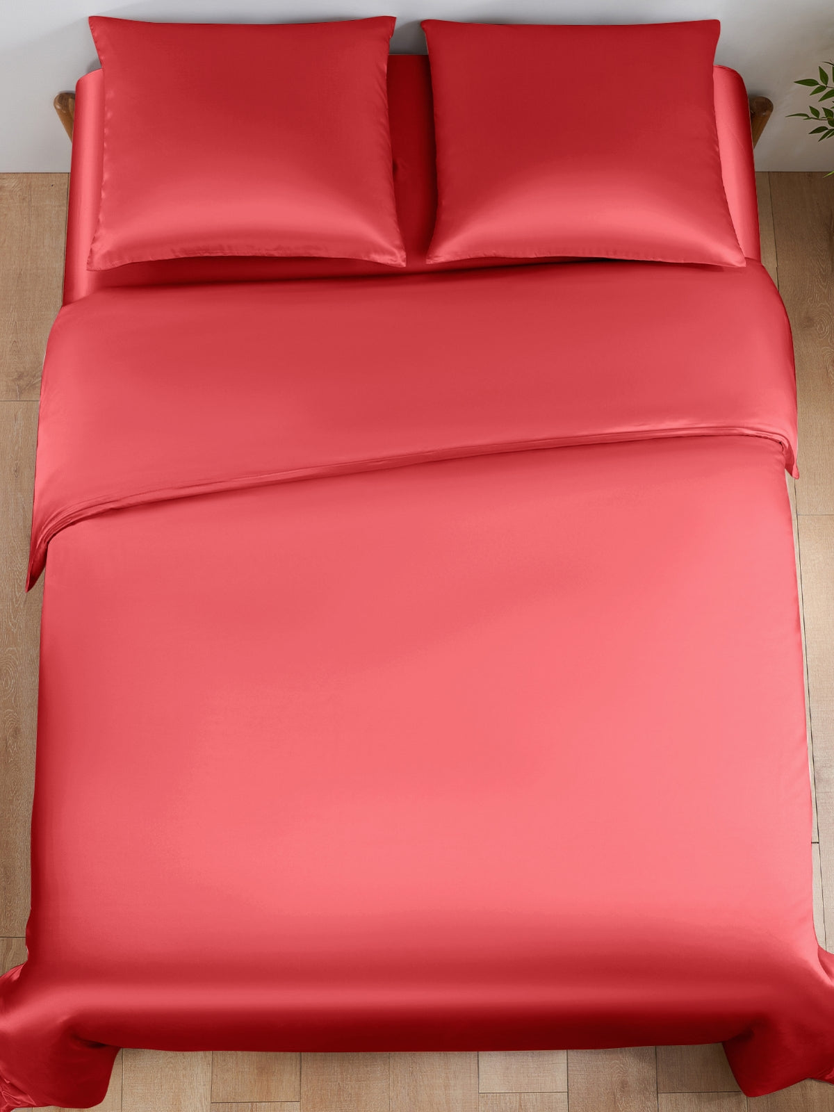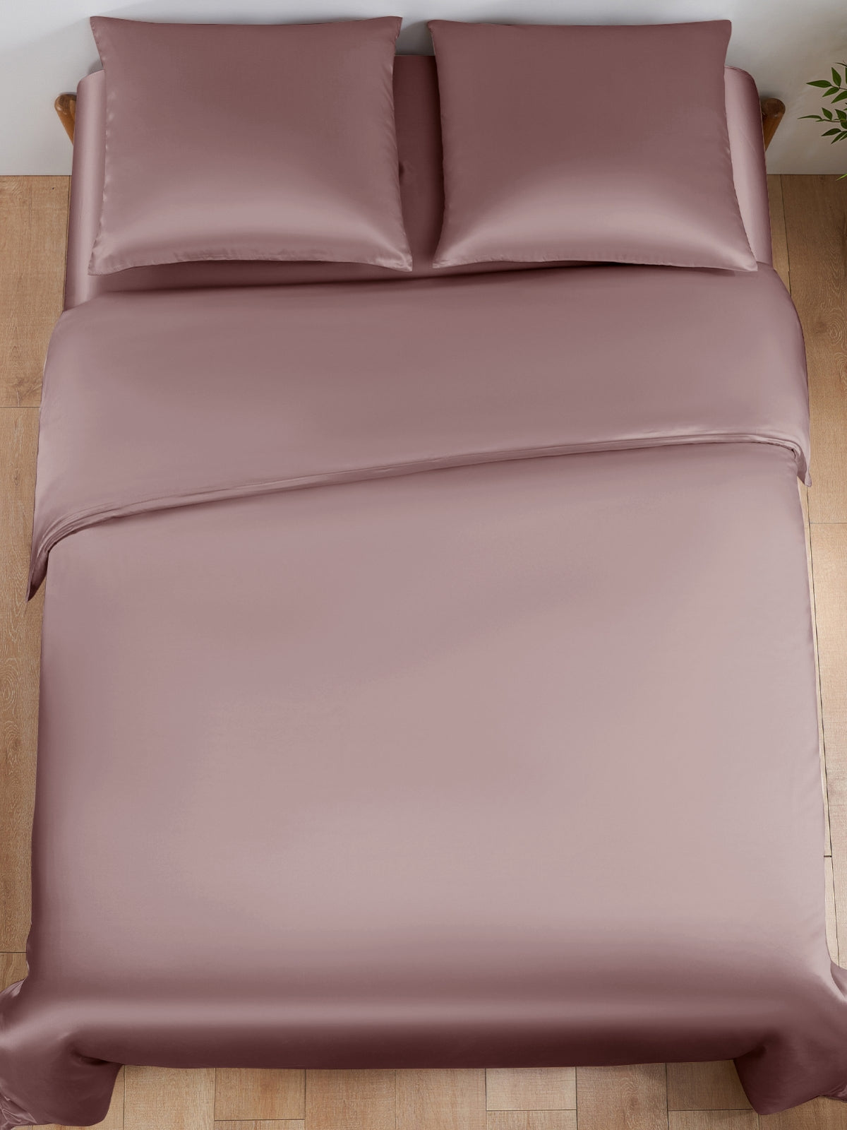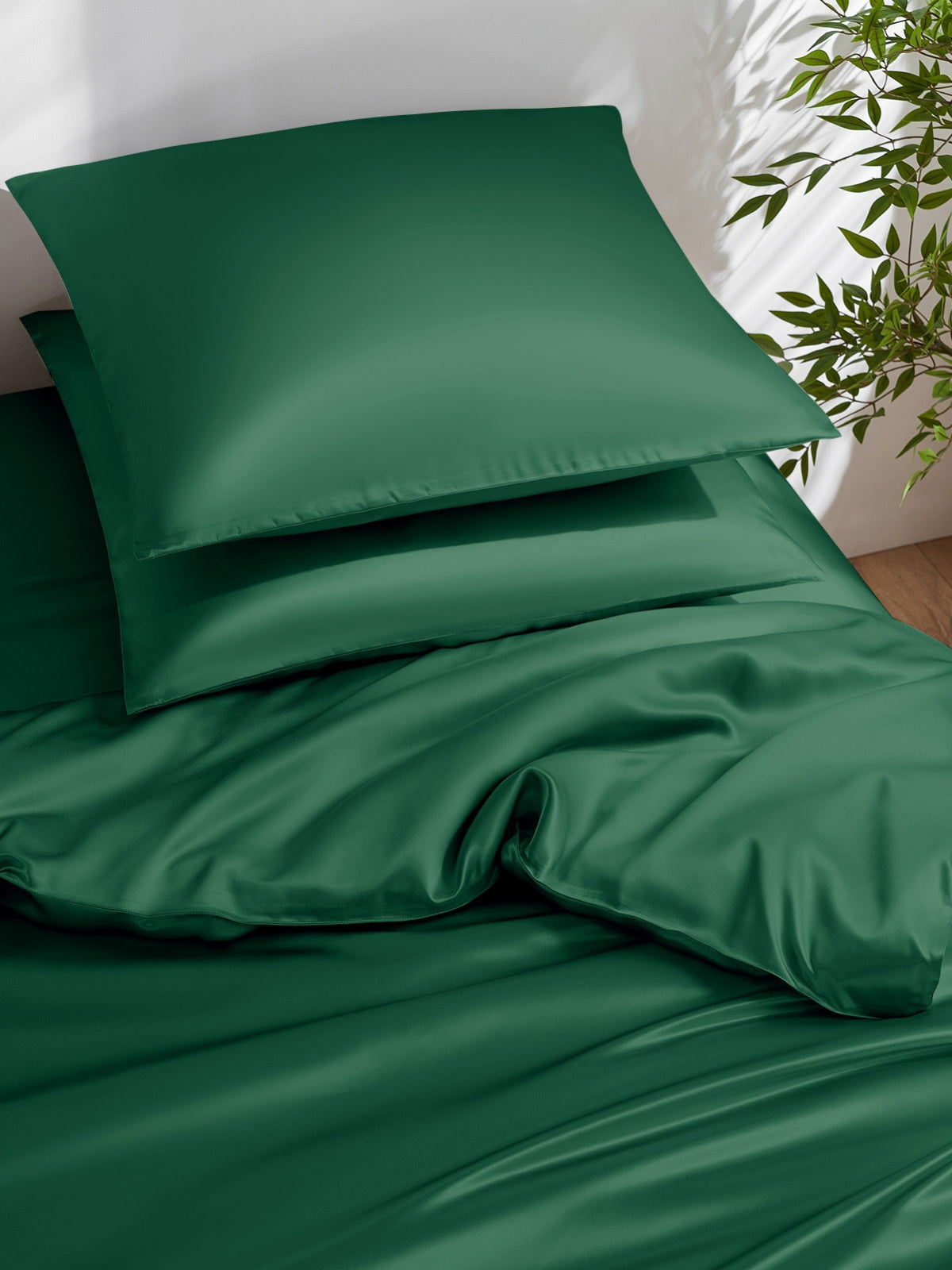 Dieser Bettbezug aus 19 Momme-Maulbeerseide ist ein luxuriöses 3-teiliges Set, bestehend aus einem Bettbezug und einem passenden Kissenbezug. Die Seide hat einen zarten und prächtigen Glanz, der jedes Schlafzimmer ergänzt. Es handelt sich um eine hochwertige Seide mit einer Fadenzahl von 400, die aus Sicherheitsgründen auch Öko-Tex 100 zertifiziert ist.