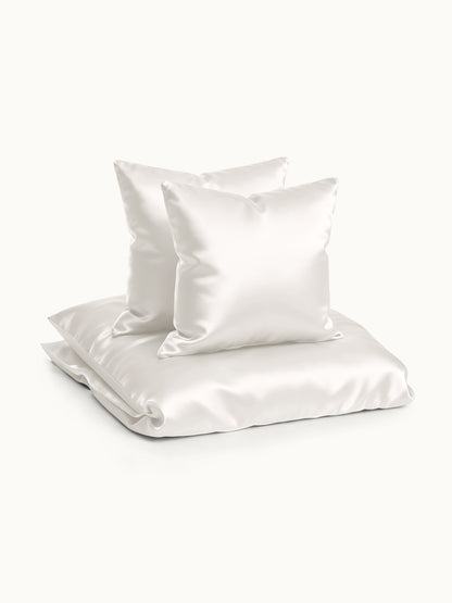 Maulbeerseide ist glatt und reduziert Reibung, was Haar-Bruch und Schlaffalten vorbeugen kann. Das Material ist zudem hypoallergen und temperaturausgleichend, für einen komfortablen Schlaf bei jedem Wetter.