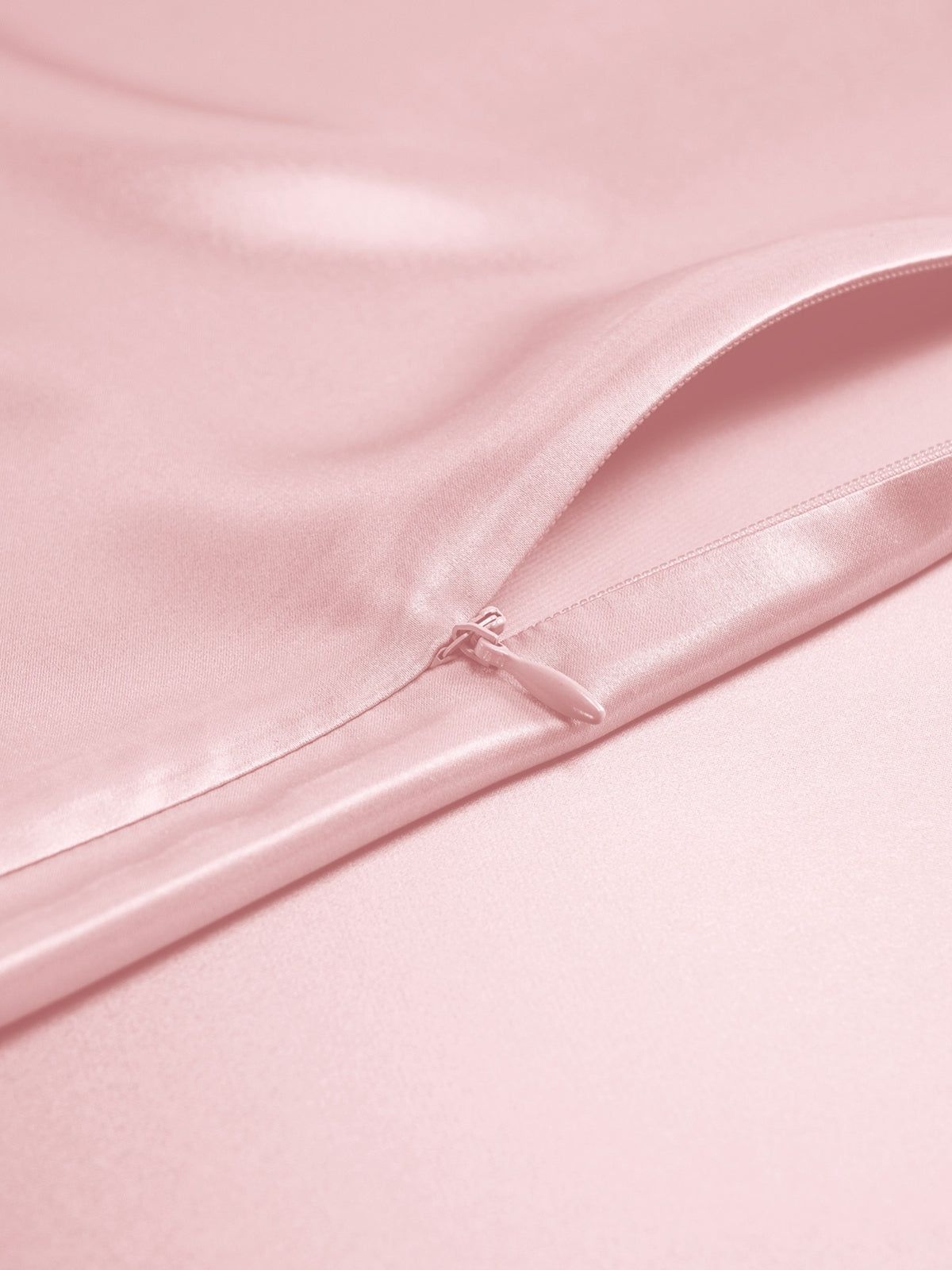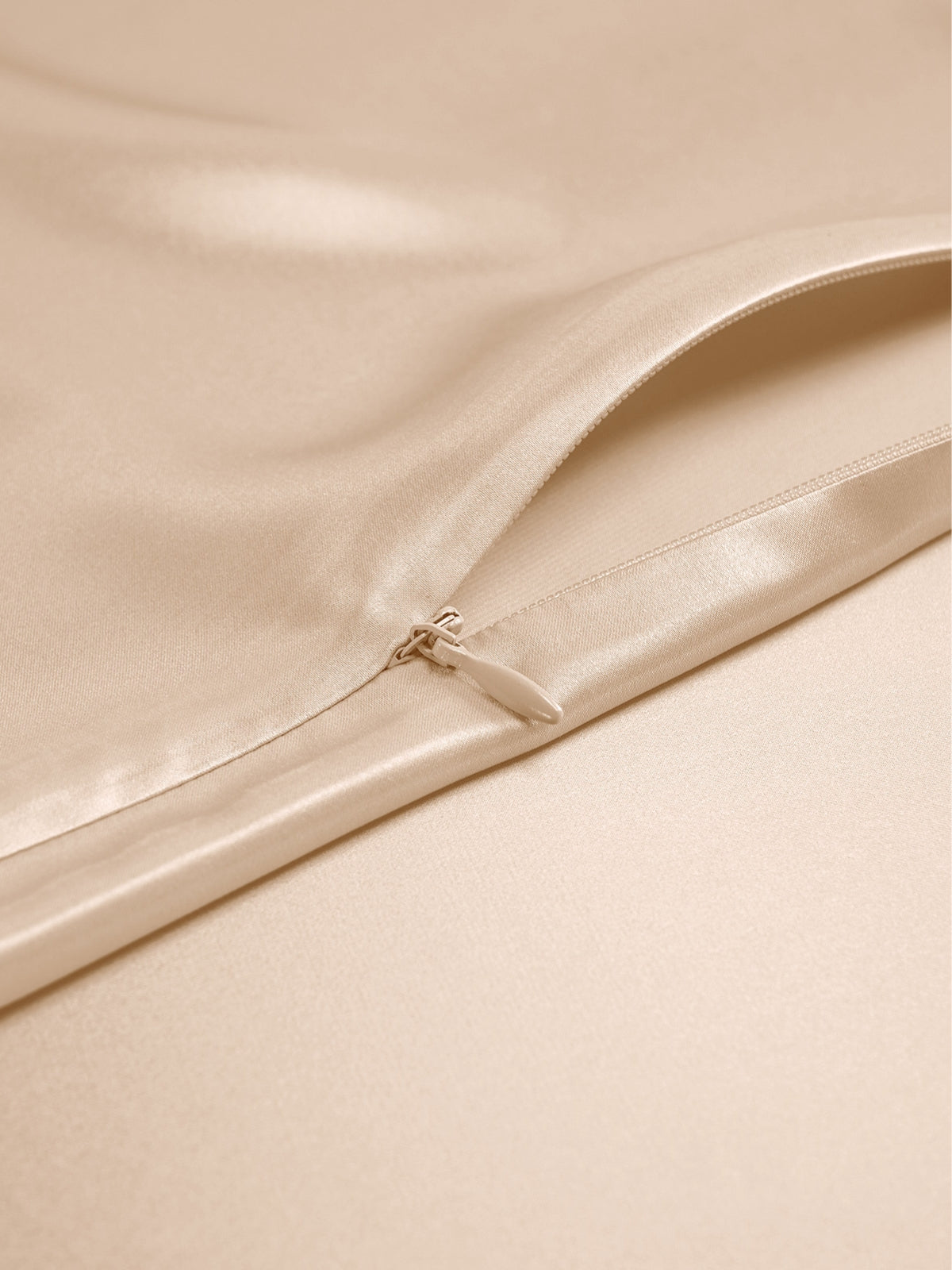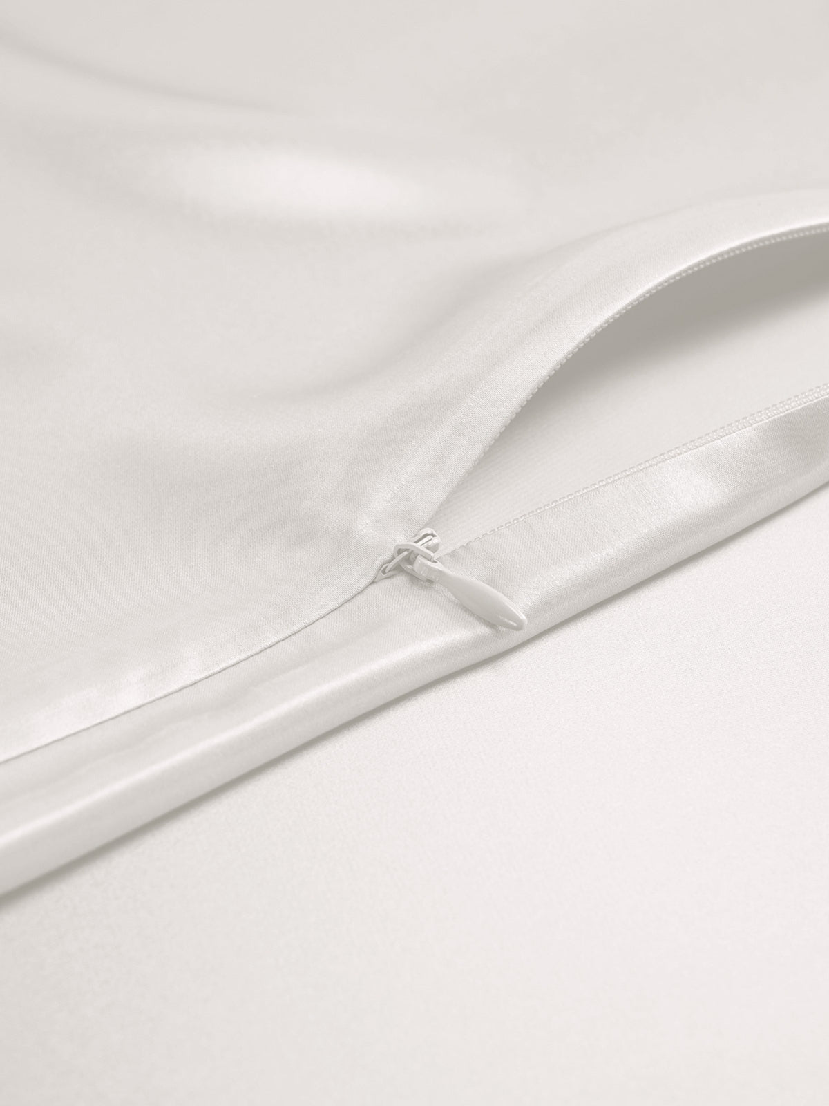 Ein nahtlos integrierter Reißverschluss aus speziellem Seidengewebe gewährleistet ein elegantes Erscheinungsbild ohne störende Metallteile. Einfach zu öffnen und zu schließen, dabei hautschief und kratzfrei. - Schlafschönheit durch weniger Reibung