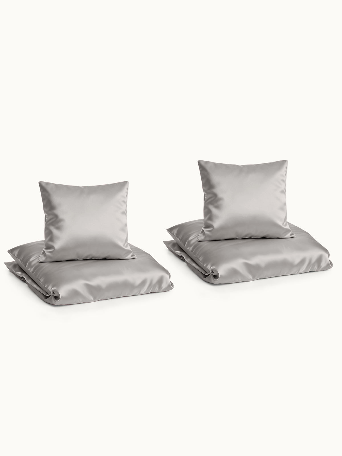 Dieses Set enthält alles für die perfekte Schlafumgebung: 2x Bettbezüge für den mühelosen Wechsel und 2x Kissenbezüge – alle aus 100% Maulbeerseide. - 8 Innengurte für den perfekten Sitz