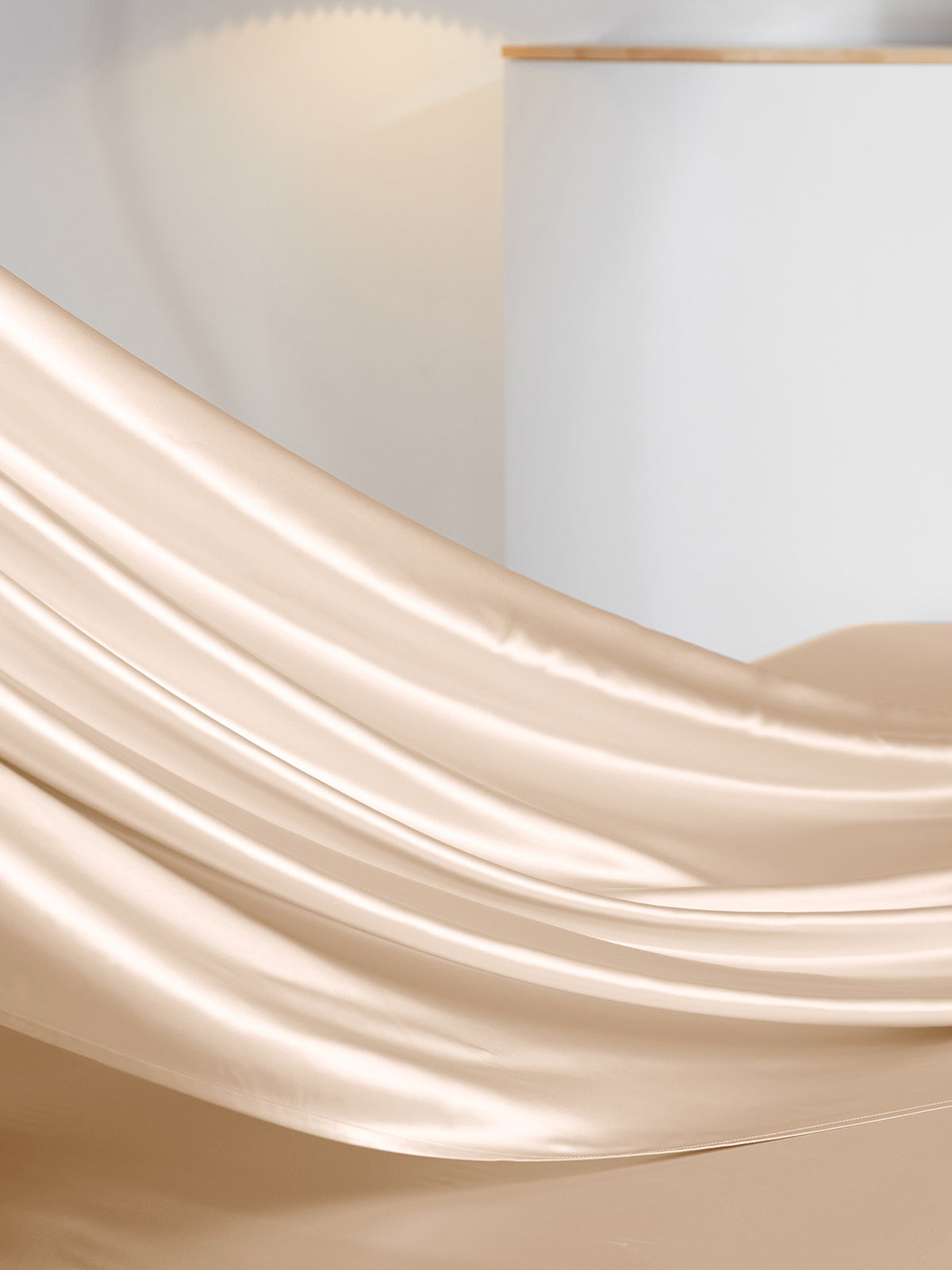 Ein entscheidender Qualitätsindikator ist das Gewicht der Seide, gemessen in Momme (mm). Eine höhere Momme-Zahl wie 22 mm oder 25 mm steht für eine dichtere, schwerere und damit langlebigere Seide mit einem üppigeren, luxuriöseren Griff.