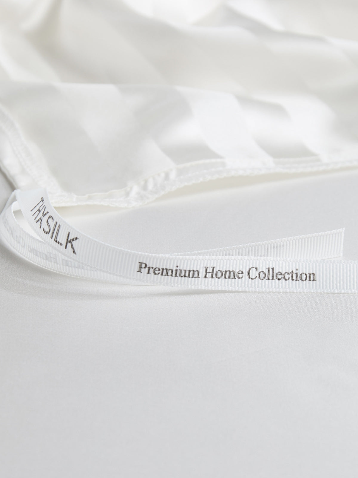 Die erhabenen Streifen sind fest in die Seide eingewebt, nicht aufgedruckt. Dies verleiht Ihrer Bettwäsche eine edle, haptische Tiefe und eine zeitlose Eleganz. - Hergestellt aus 100% Maulbeerseide in 22 Momme mit einem feinen, gewebten Jacquard-Streifen-Design für optische und haptische Eleganz