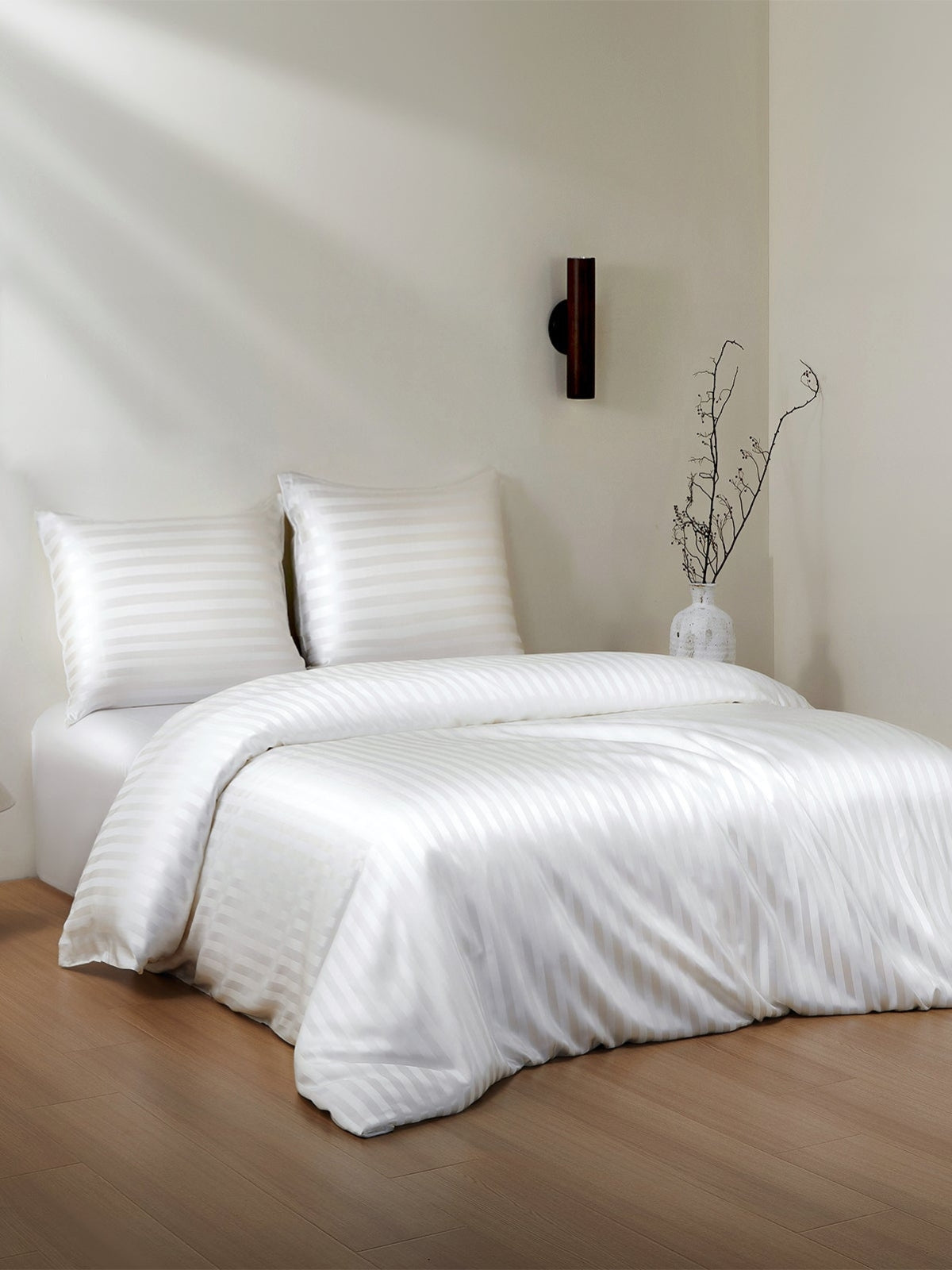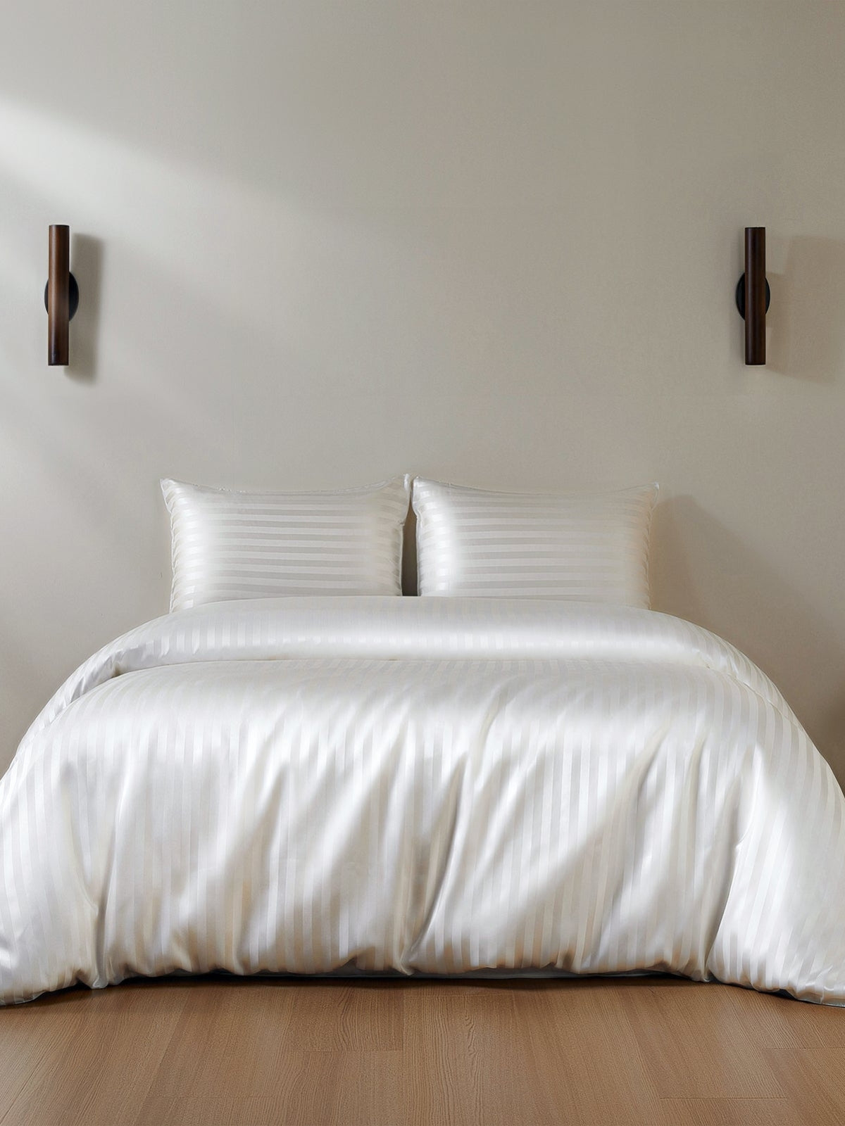 Bettwäsche Set aus 22 Momme Maulbeerseide | Mit gewebten Jacquard-Streifen | 3-teilig