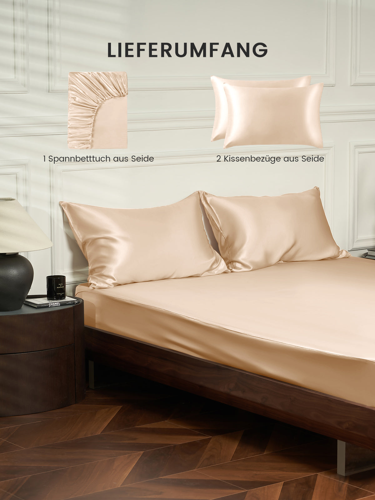 Spannbettlaken Set 25 Momme Seide 3 Teile Rechteck Kissen