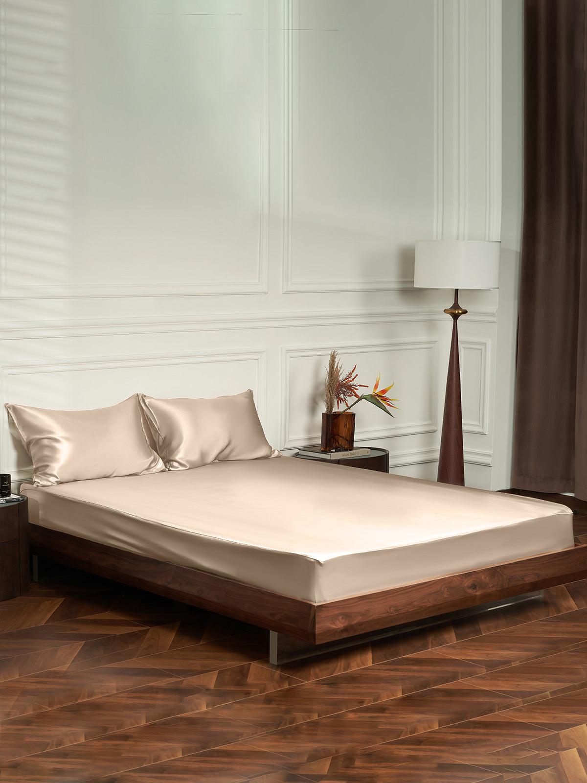 Unser 25 Momme Seiden-Spannbettlaken vereint luxuriösen Komfort mit perfekter Passform. Die besonders dichte Webung der 100% Maulbeerseide sorgt für langlebige Weichheit und ein edles Gefühl. Mit 30 cm Tiefe umschließt es auch dickere Matratzen sicher - erhältlich in 7 harmonischen Farben für Ihr Wohlfühlschlafzimmer.