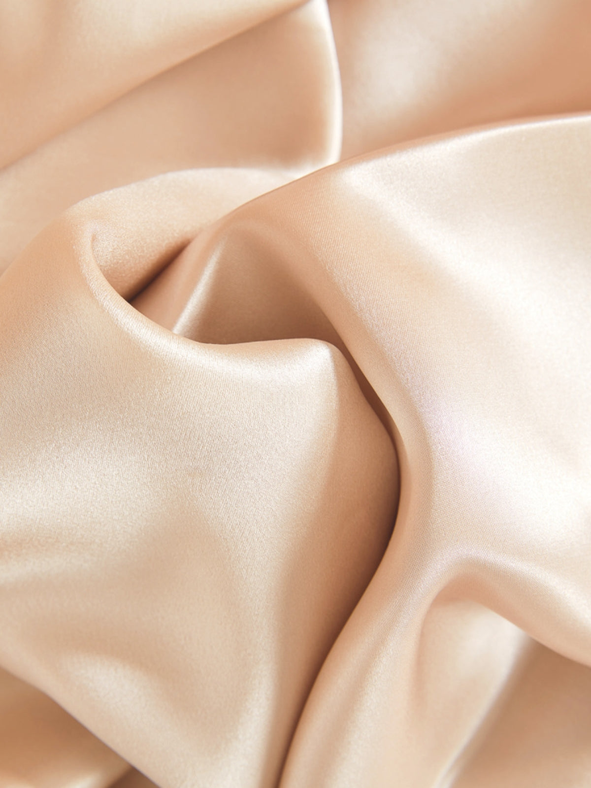 Echte Maulbeerseide ist ein reines Naturmaterial, während Satin eine Webart beschreibt. Seide ist von Natur aus hypoallergen, atmungsaktiv und mit pflegenden Aminosäuren ausgestattet – das macht sie besonders hautfreundlich und ideal für einen erholsamen Schlaf.