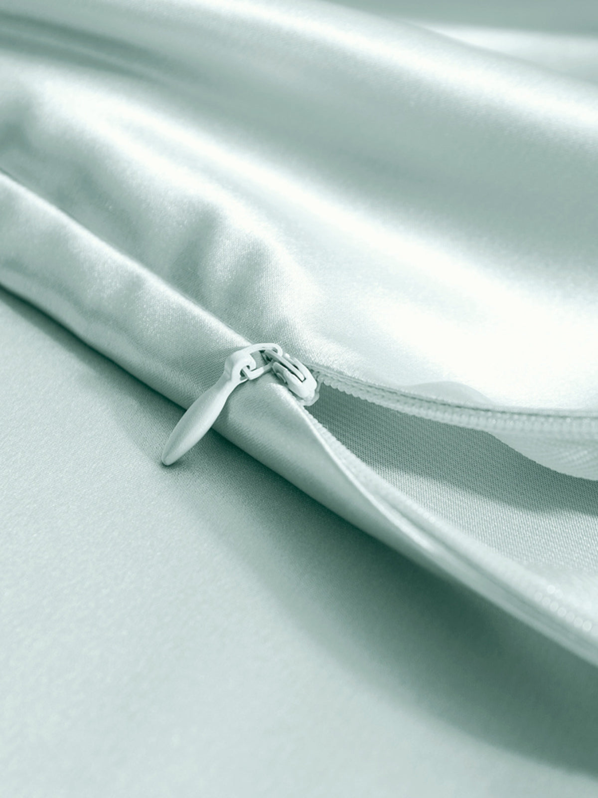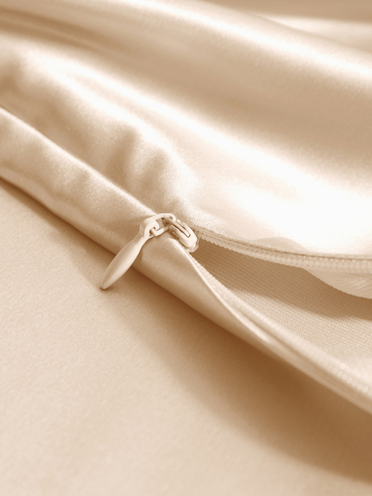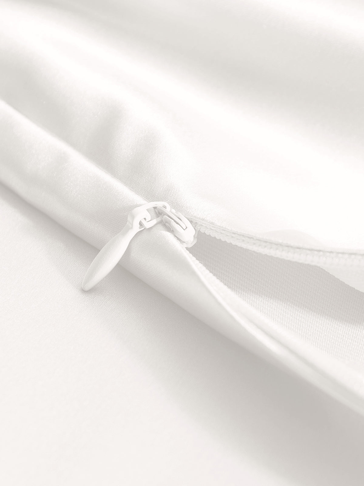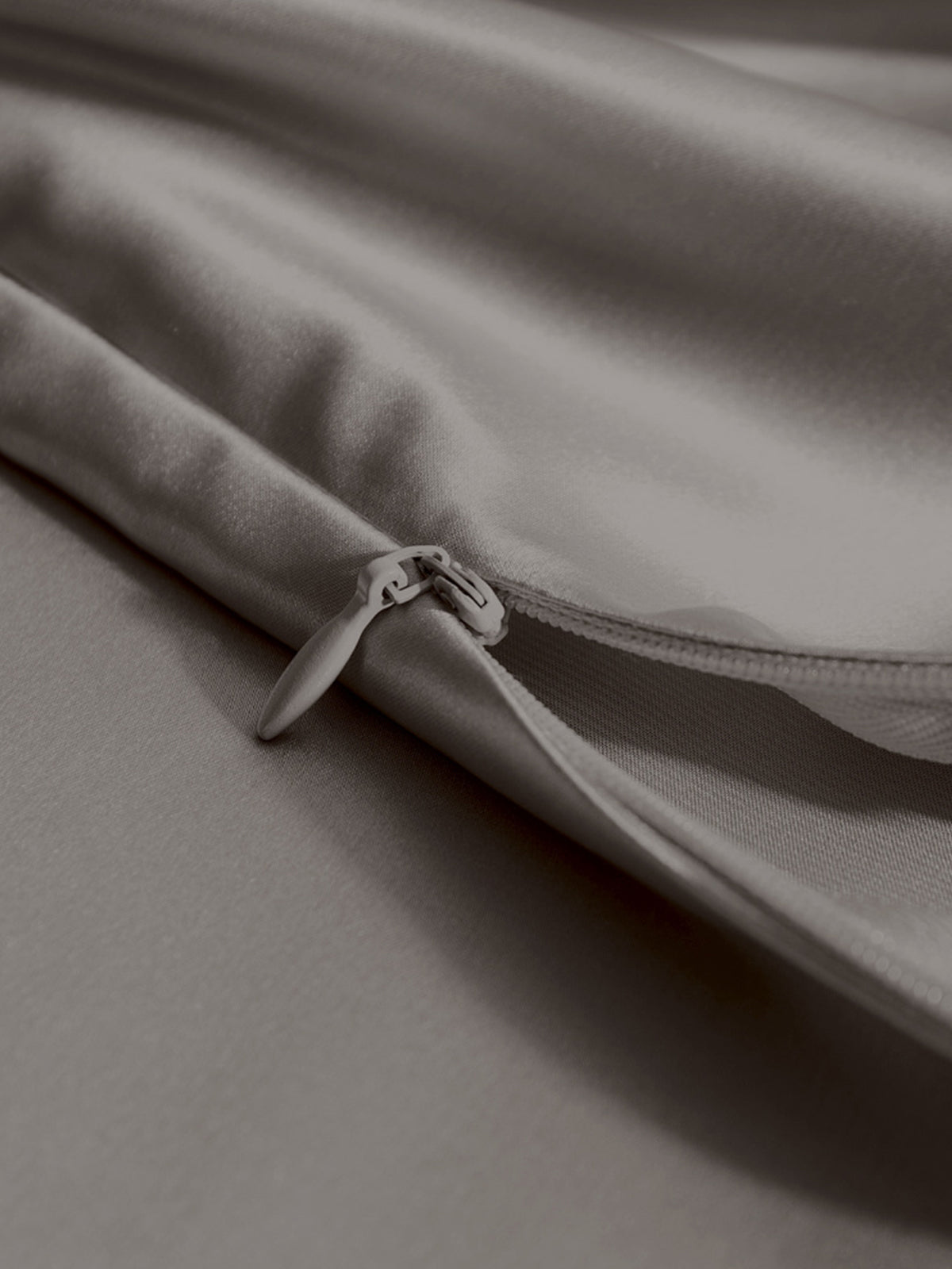 Ein nahtlos integrierter Reißverschluss aus speziellem Seidengewebe gewährleistet ein elegantes Erscheinungsbild ohne störende Metallteile. Einfach zu öffnen und zu schließen, dabei hautschief und kratzfrei. - Schlafschönheit durch weniger Reibung