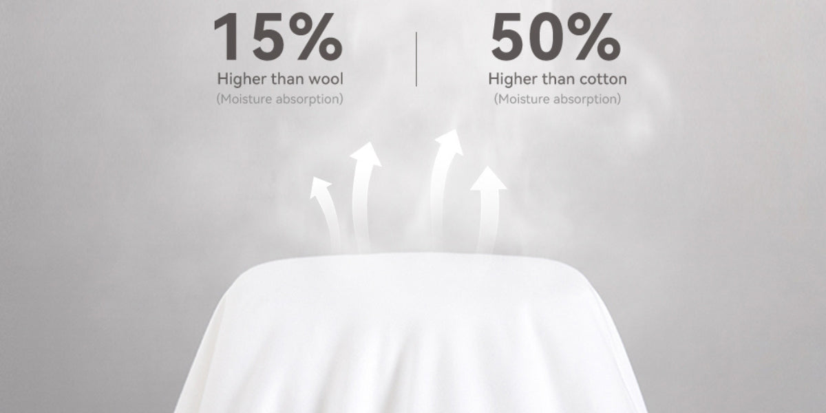 Seide enthält “hydrophile Aminosäuren“, die Feuchtigkeit aus der Luft absorbieren, um die Decke trocken und bequem zu halten.