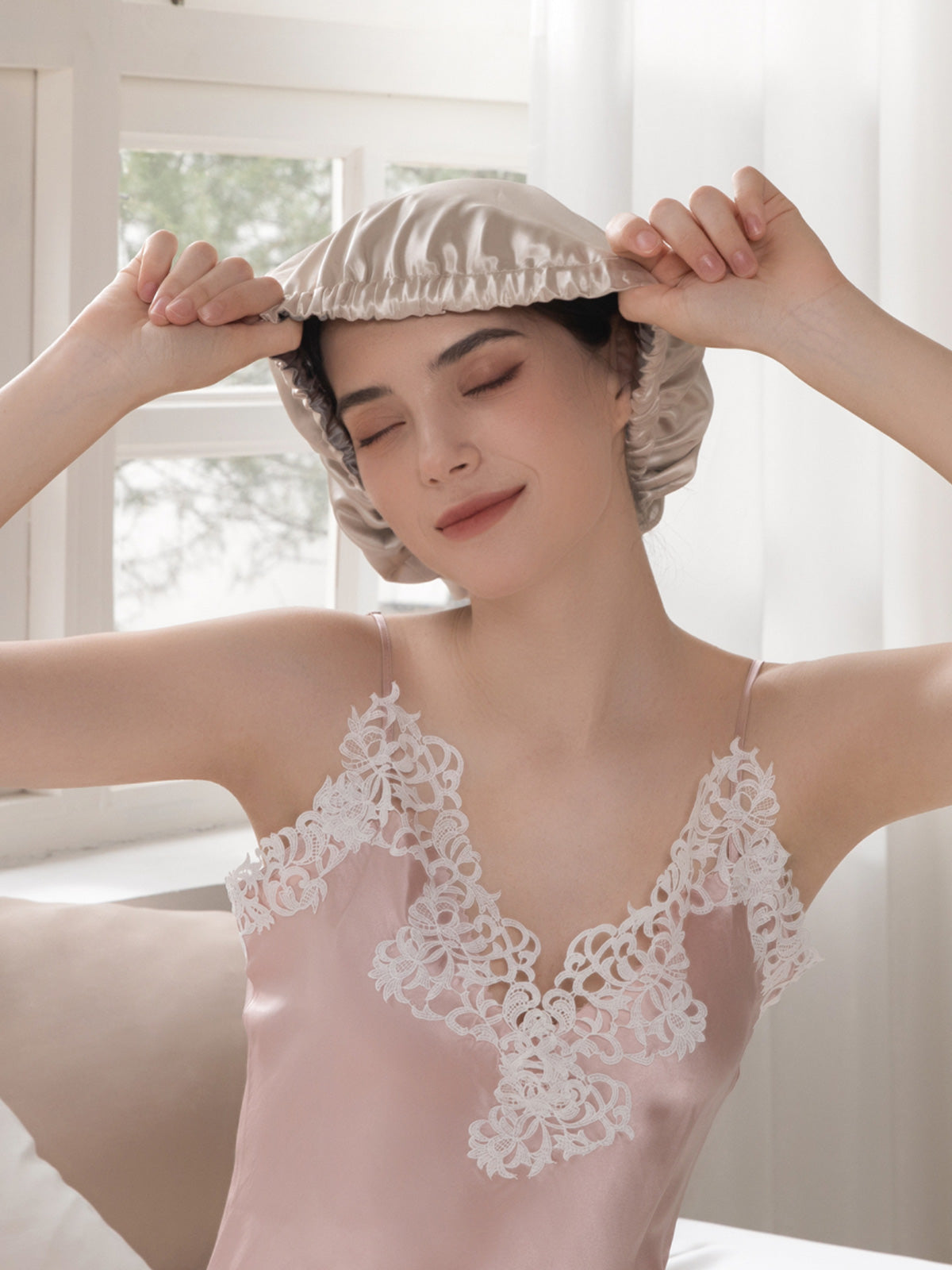22 Momme Doppellagige Seidenhaube mit Hyaluronsäure