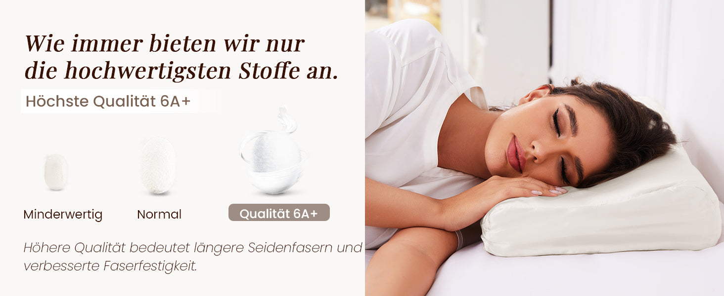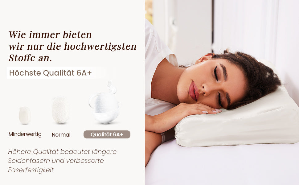 Der luxuriöse Bezug ist maschinenwaschbar (im Kaltprogramm mit Feinwaschmittel). Er verblasst und schrumpft nicht und trocknet schnell an der Luft. Bei richtiger Pflege begleitet Sie die hochwertige 19 Momme Seide bis zu 5 Jahre.