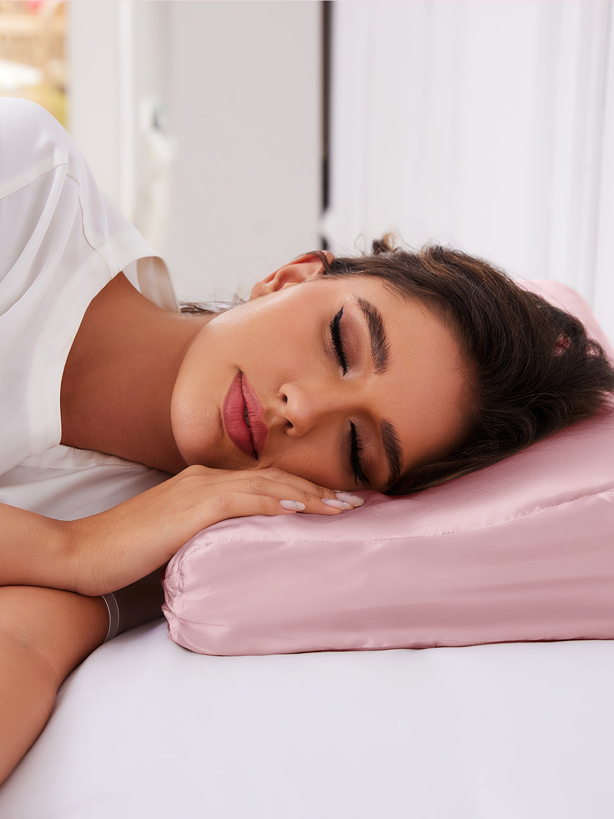 Die außergewöhnlich glatte und kühlende Oberfläche der 19 Momme starken Seide minimiert Reibung. Beugen Sie Schlaffalten vor und erwachen Sie mit weicherer Haut sowie glänzendem, weniger verwuscheltem Haar.