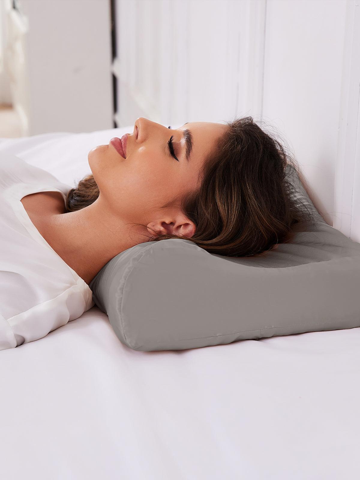 Unser abnehmbarer, waschbarer Kissenbezug aus 100% Maulbeerseide schützt Ihr empfindliches Konturkissen vor Verschmutzung und verleiht ihm eine weiche, hautsanfte Oberfläche. Der superbequeme Bezug mit verstecktem Reißverschluss verrutscht nicht und bewahrt die Form Ihres Kissens.