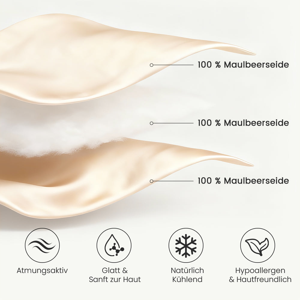 100% Maulbeerseide innen & außen: 19 Momme Bezug, gefüllt mit langfaseriger Kapokseide
