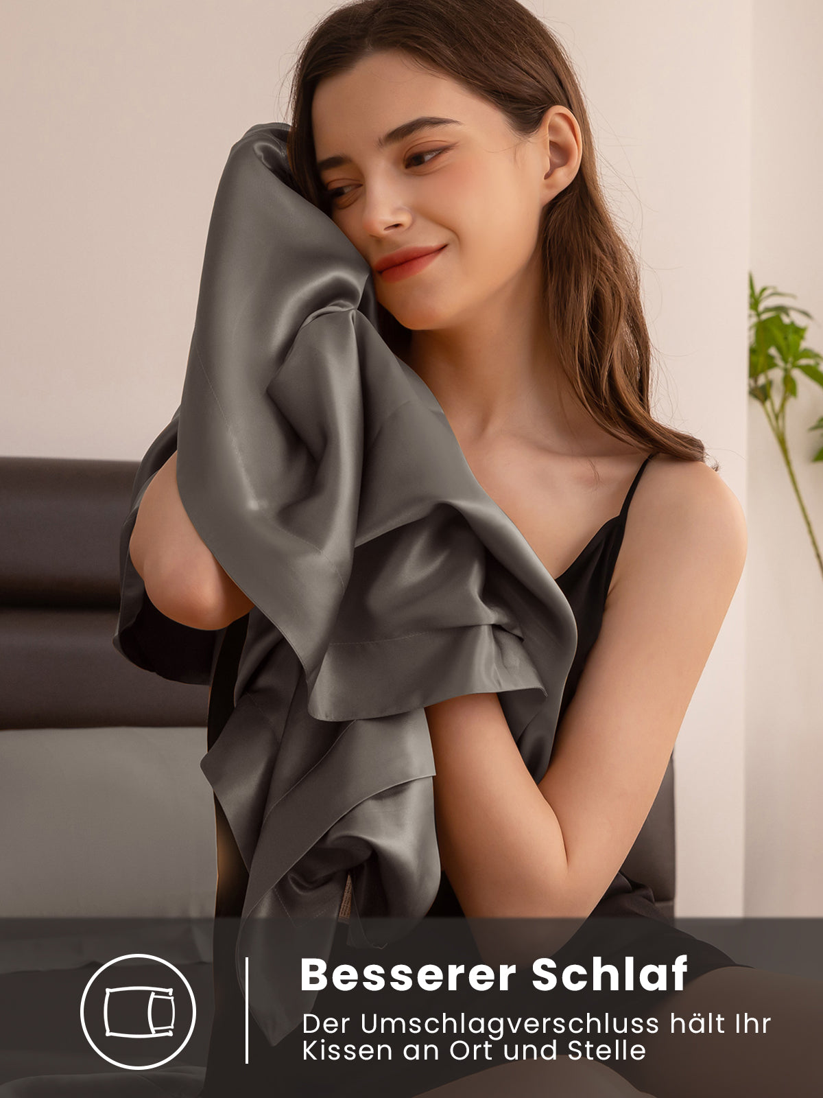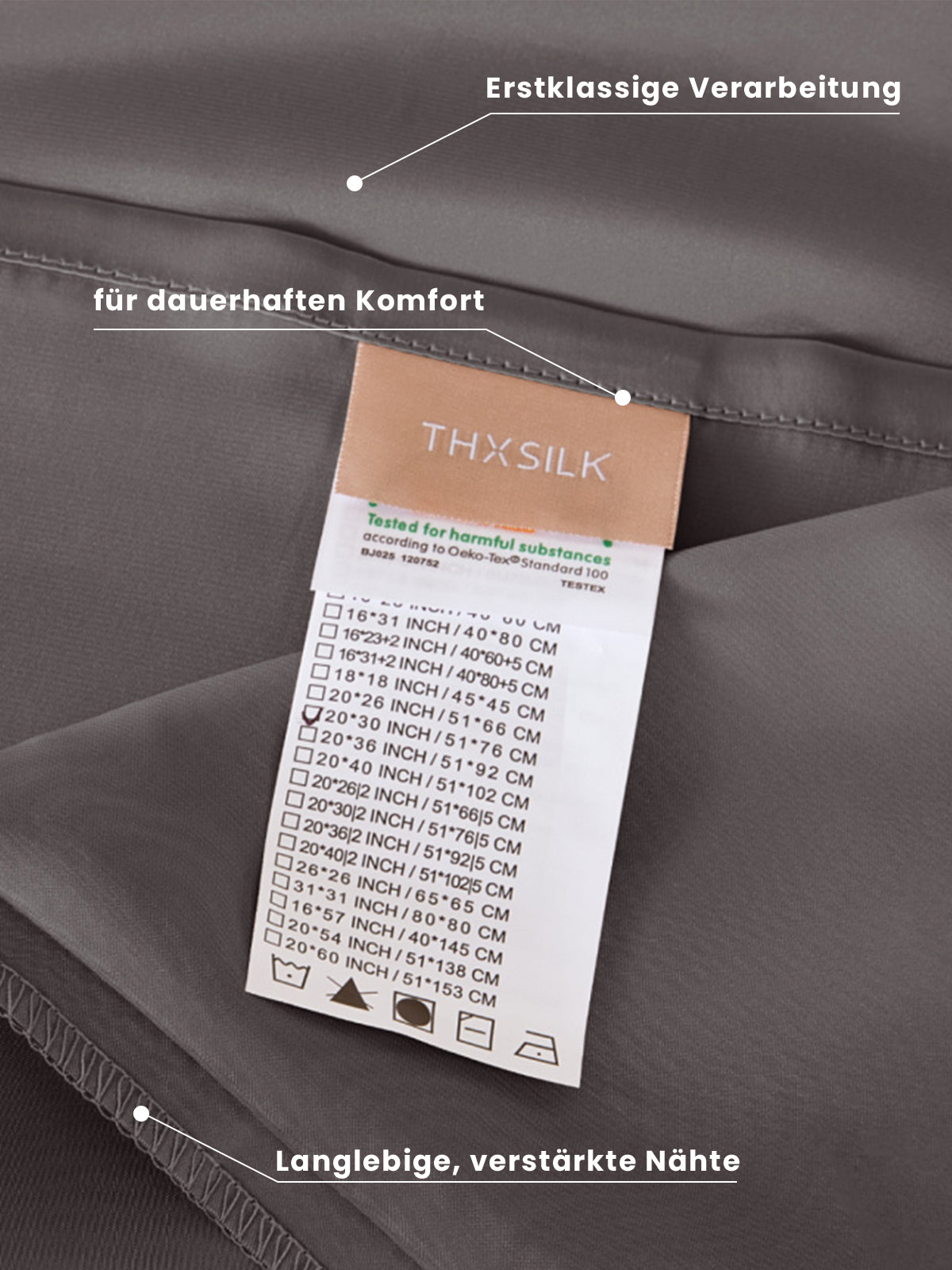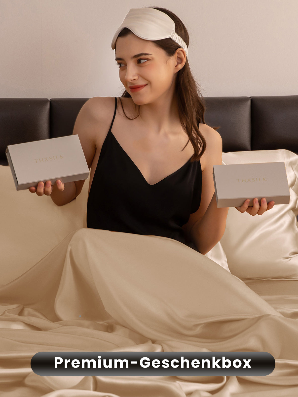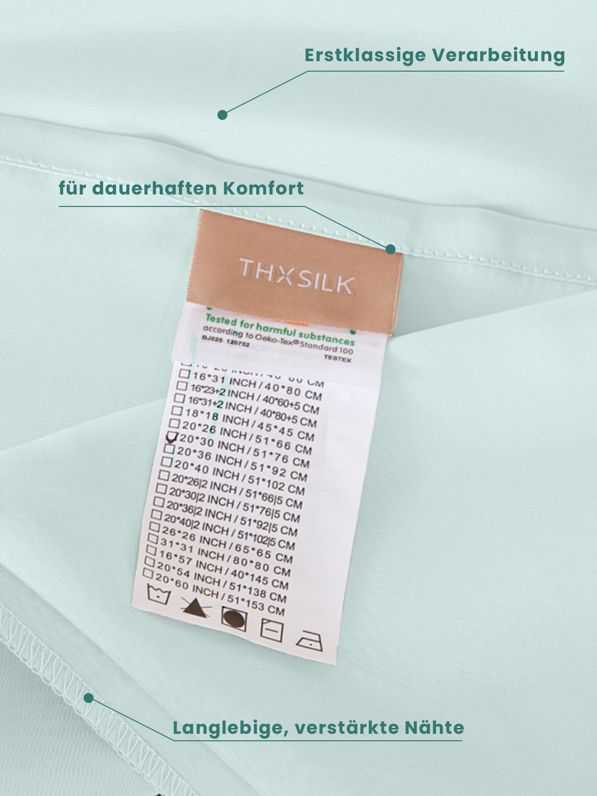 Die 25-Momme-Seidenkissenbezüge von THXSILK bestehen aus 100 % reiner Maulbeerseide. Die hochwertigen Maulbeerseidenkissenbezüge der Güteklasse 6A helfen Asthmatikern und Allergikern und sind für empfindliche Schläfer geeignet. Unsere 25-mm-Seidenkissenbezüge enthalten fast 20 % mehr Seide als die 22-mm-Kissenbezüge. Sie sind waschbar und pflegeleicht. Jedes Detail unserer Kissenbezüge zeigt das Streben nach dem ultimativen Luxusleben.