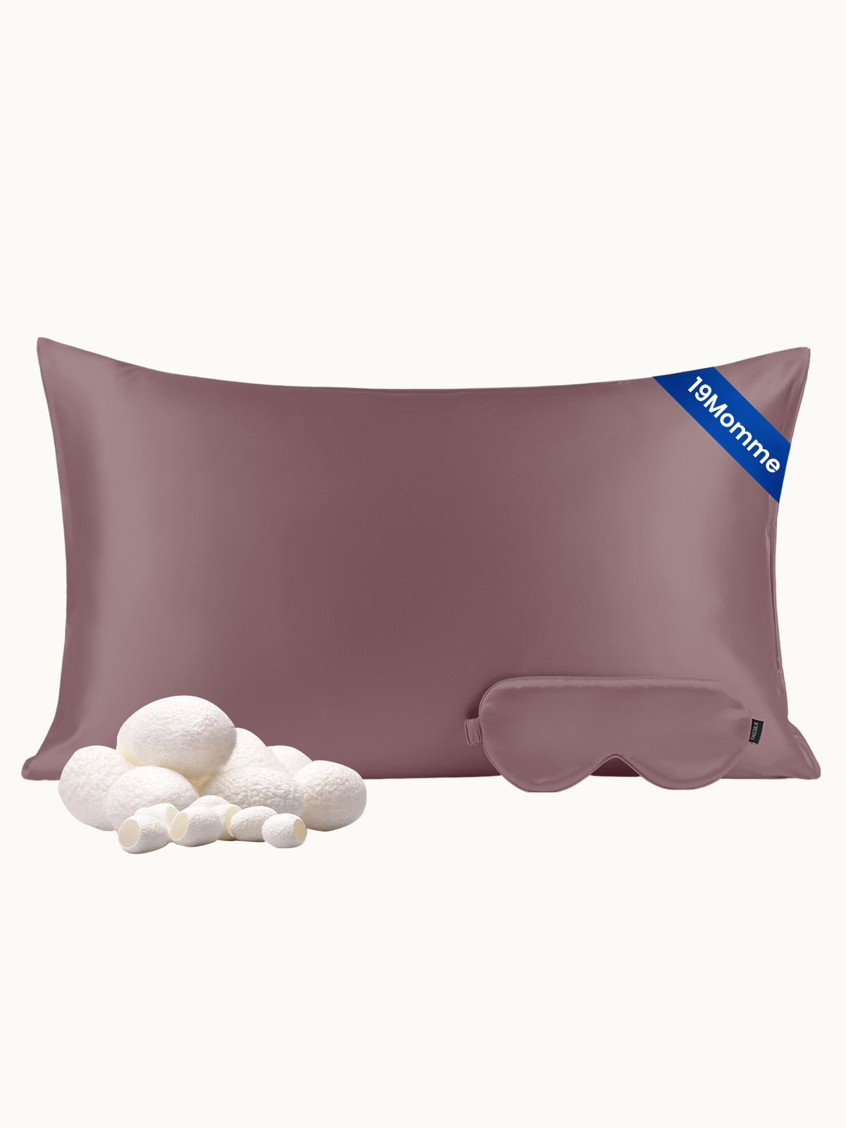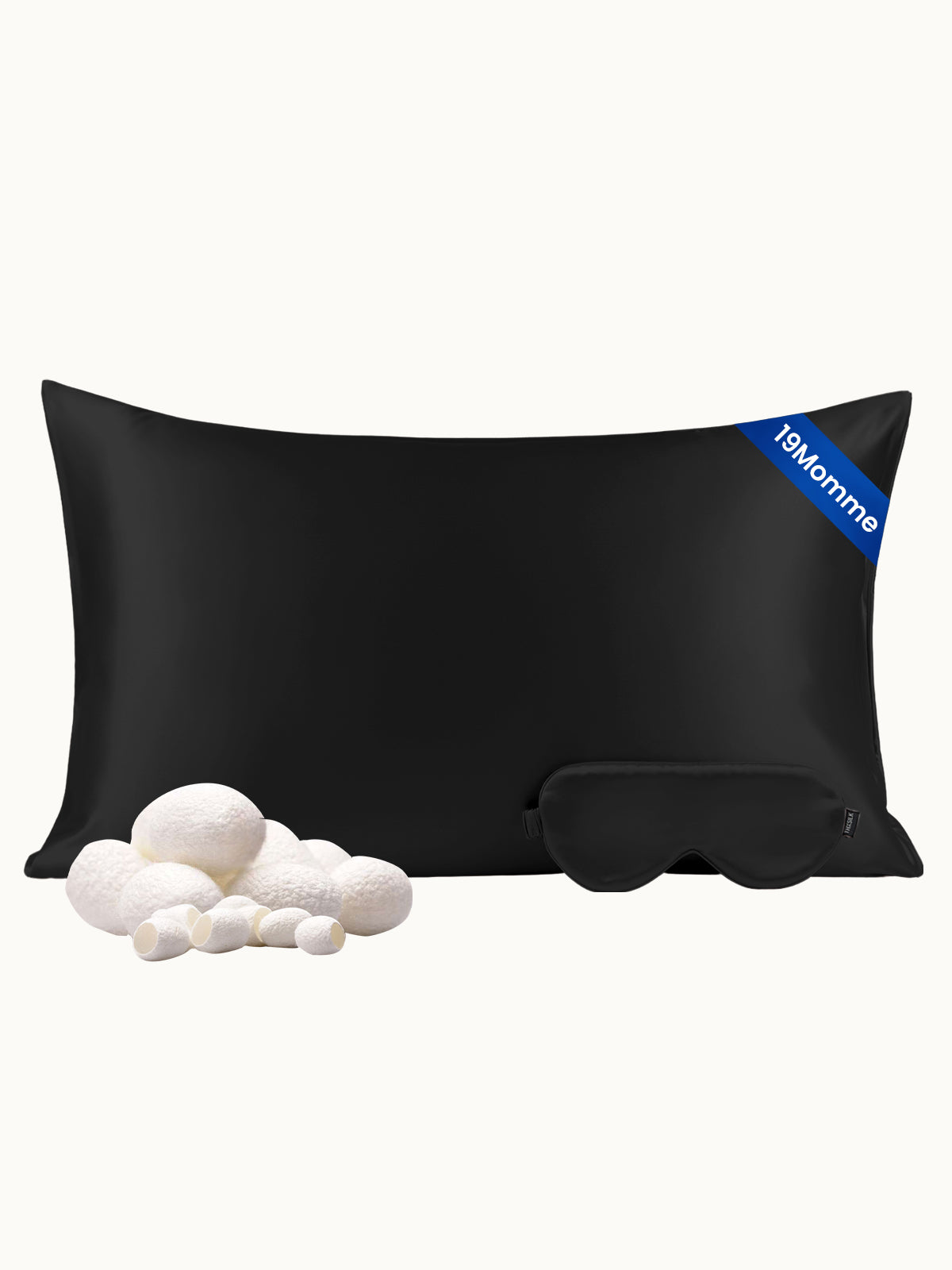 19 Momme Seiden-Kissenbezug mit Augenmaske Set aus 100% Maulbeerseide