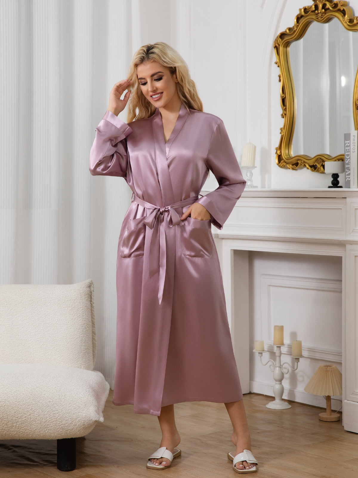19 Momme Damen Lang Seidenbademantel