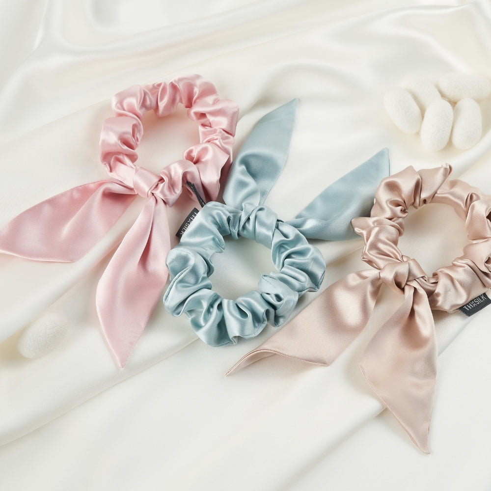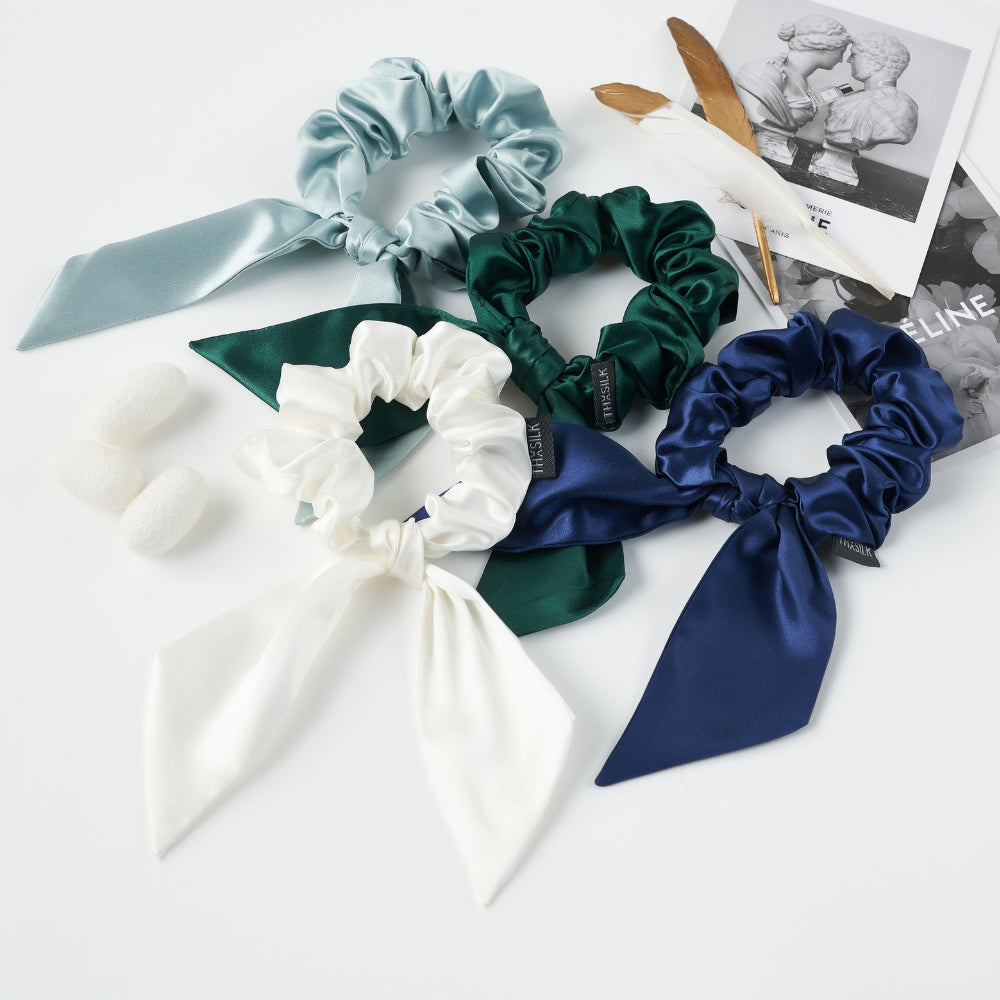 Erweitern Sie Ihre Accessoire-Kollektion mit unseren seidig-weichen Scrunchies aus hochwertiger Maulbeerseide. Perfekt für jeden Anlass!