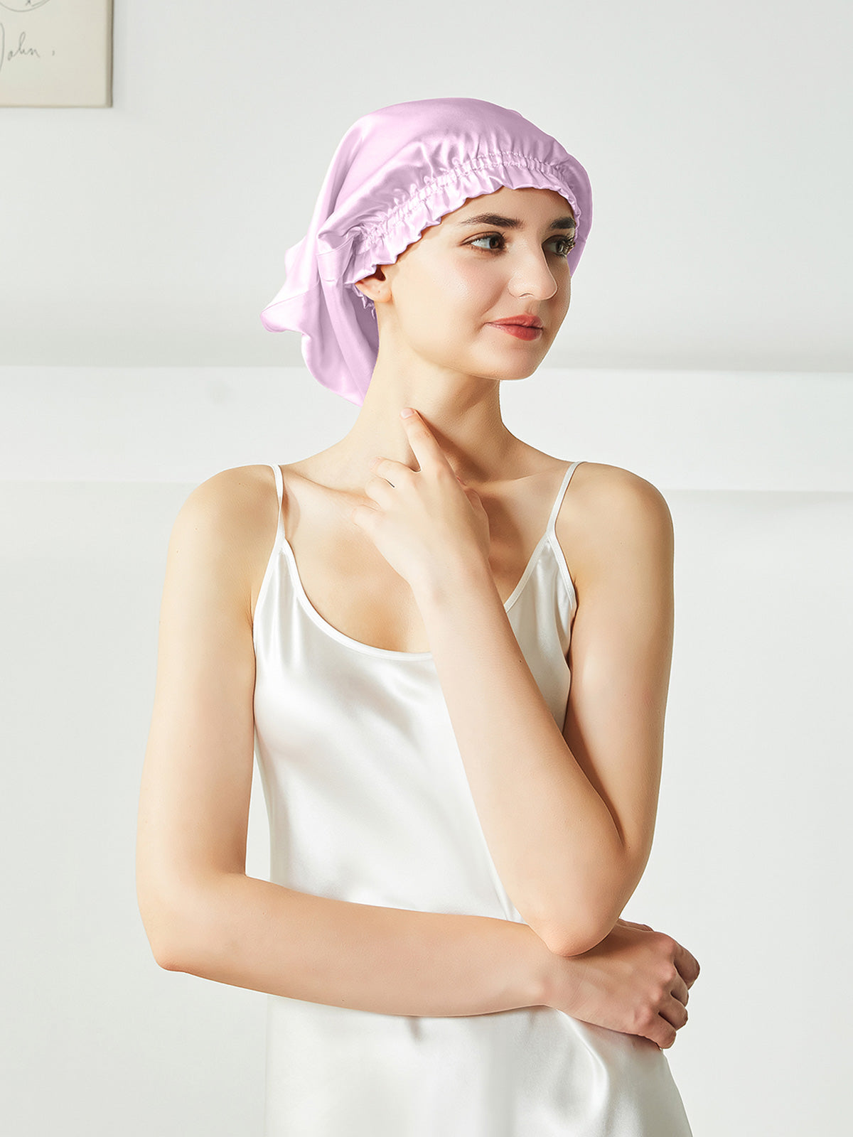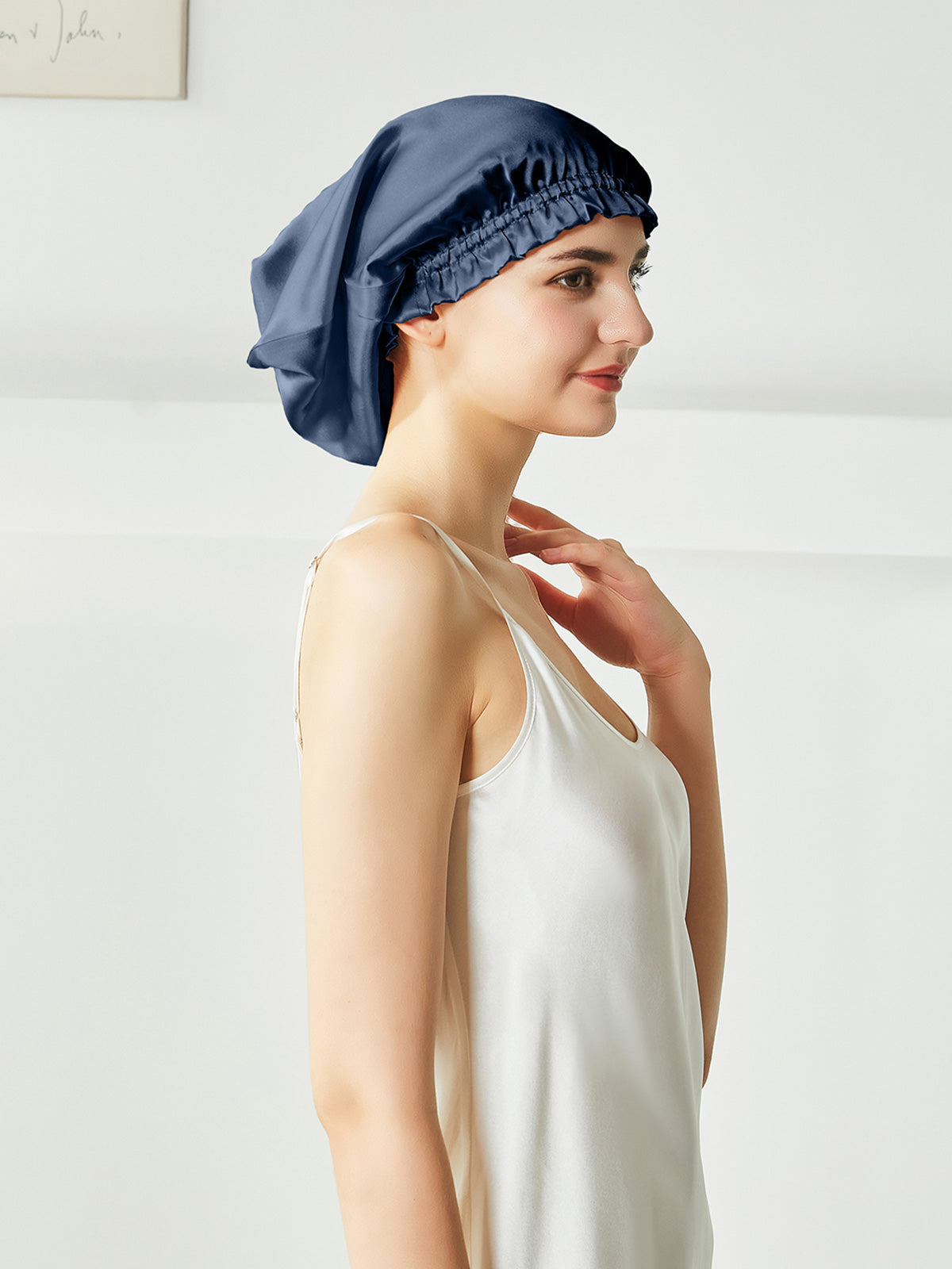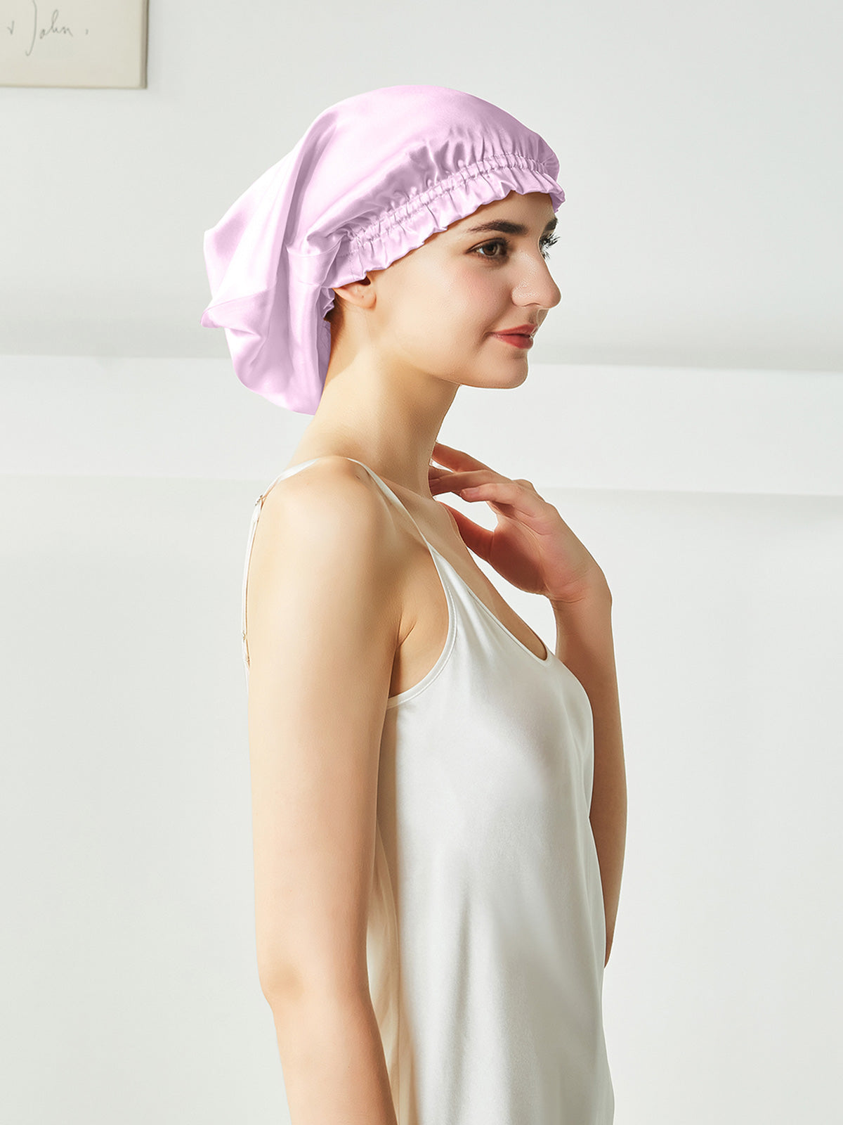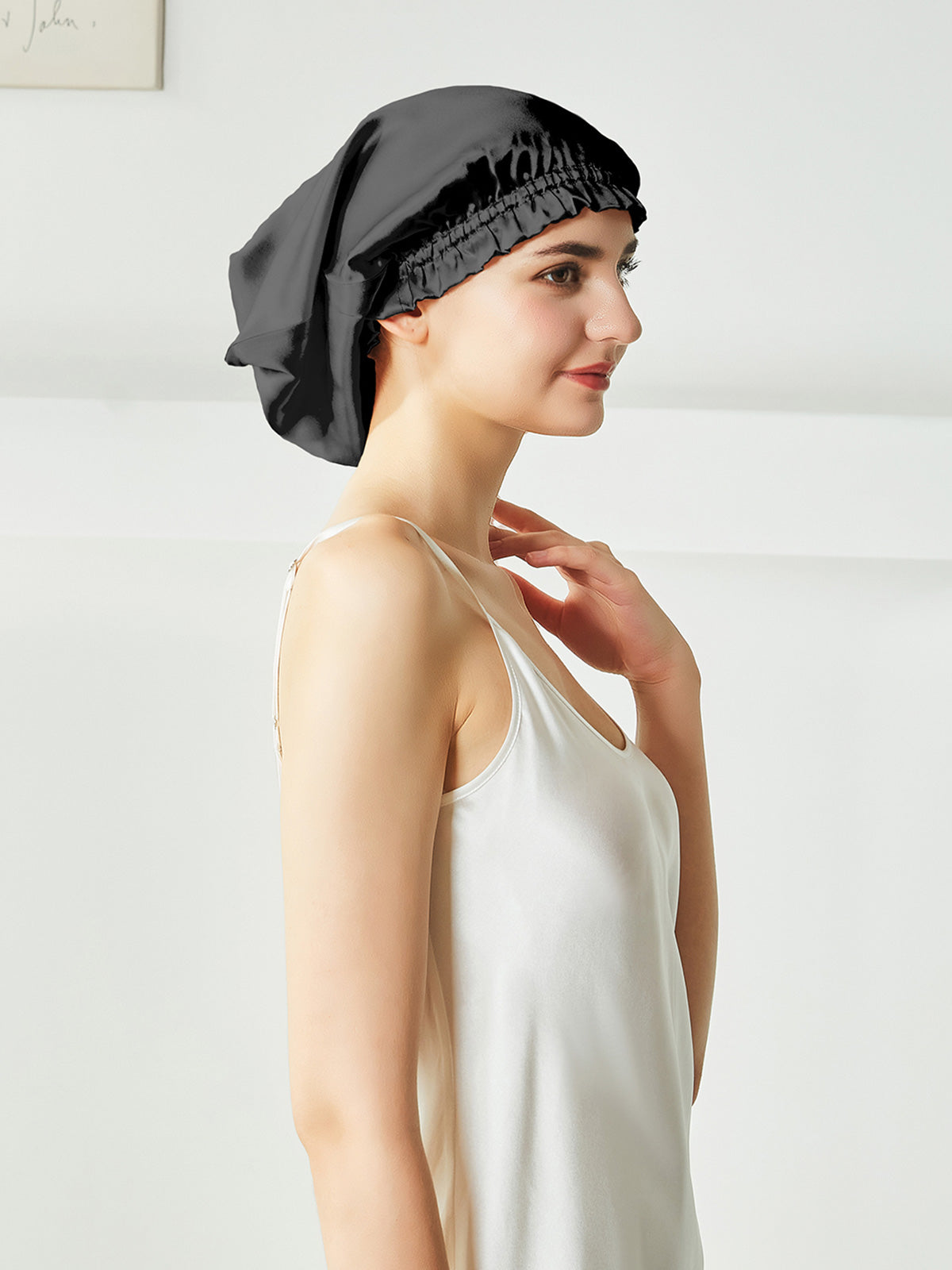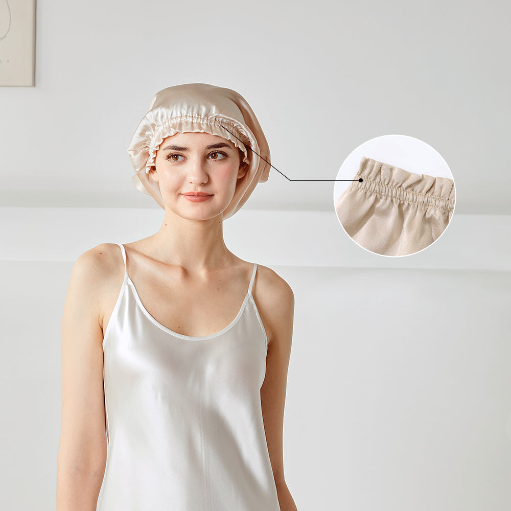 Dies ist eine Schlafhaube aus reiner Seide. Sie können Ihr Haar ganz entspannt in die Nachthaube stecken, anstatt es wie die kurze Nachthaube auf dem Kopf zu falten, können Sie es vor dem Schlafengehen einfach auf dem Kopf tragen. Seide kann das Haar effektiv mit Feuchtigkeit versorgen, es vor Kräuseln schützen und ist wohltuend für das Haar.