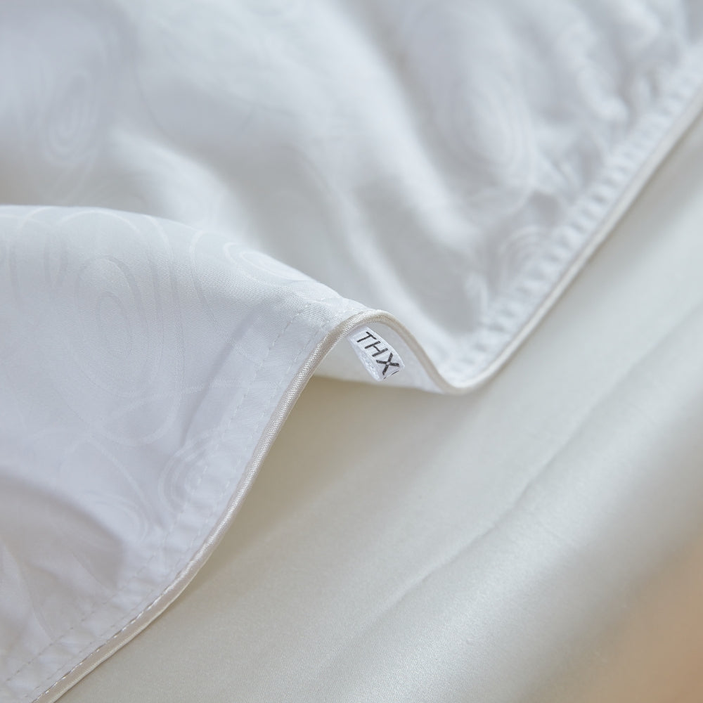 Unsere THXSILK-Decke, gefüllt mit reiner Maulbeerseide, schenkt Ihnen einzigartige Weichheit und hautfreundlichen Komfort für erholsame Nächte.
