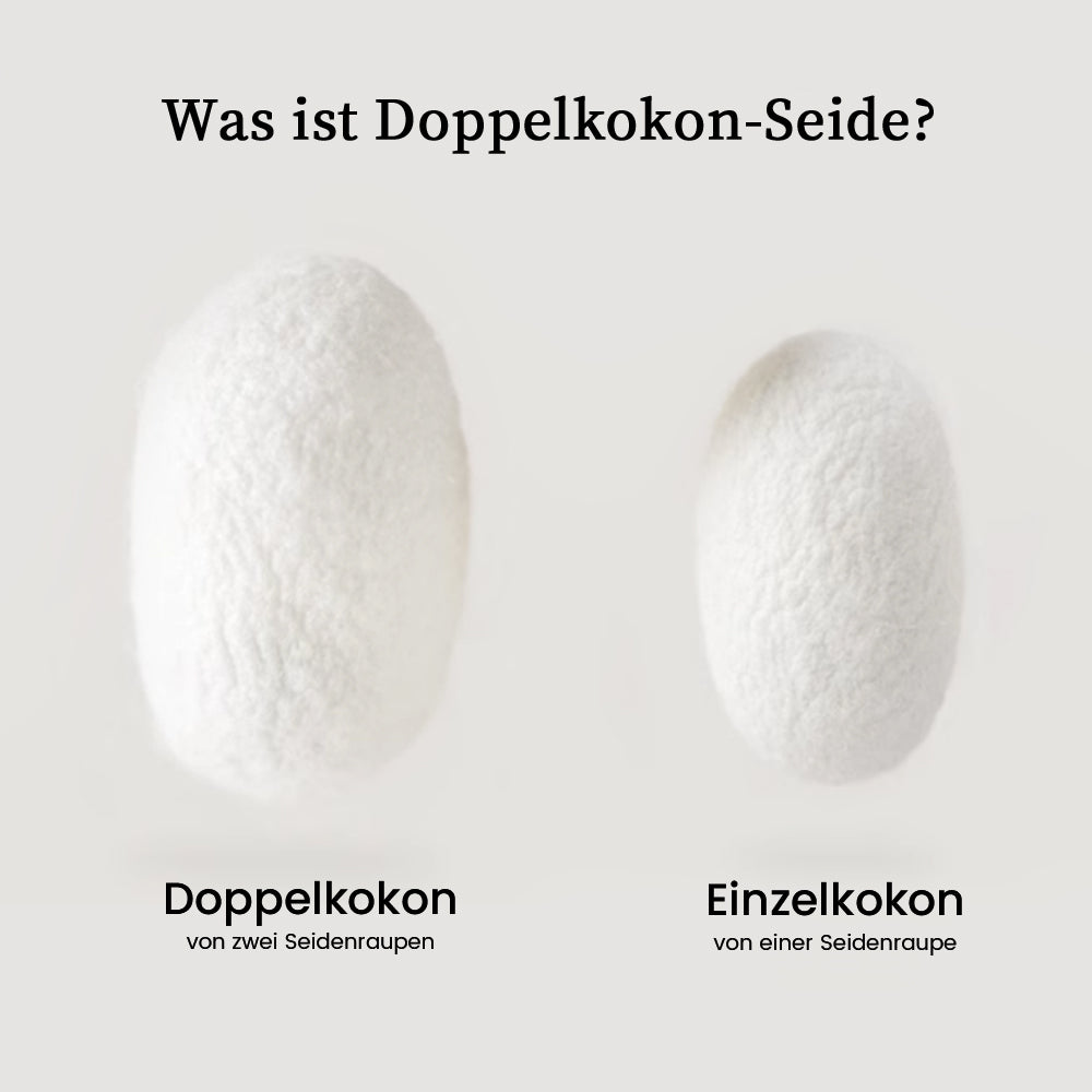 Ganz einfach: Wenn zwei Seidenraupen gemeinsam einen Kokon weben, verfilzen sich ihre Fäden zu einem dreidimensionalen Netz. Stellen Sie sich Millionen winziger Federn vor, die sich gegenseitig stützen – so entsteht unsere extrem luftige, langlebige und klimaregulierende Doppelkokon-Füllung