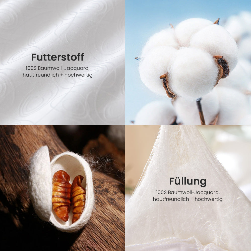 - Füllung: 100 % reine Doppelkokon-Maulbeerseide für exzellente Klimaregulierung.
