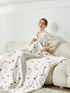 Eine mit Seide gefüllte Decke mit Erdbeermuster sieht nicht nur schöner aus und ist knitterfrei, sondern speichert auch die Körperwärme und schützt vor Kälte bei kaltem Wetter. Seide nimmt im Gegensatz zu Baumwolle keine Feuchtigkeit aus unserem Haar oder unserer Haut auf, aber ihre chemischen Fasern können dem Haar helfen, Feuchtigkeit zu speichern und Reibung zu reduzieren.