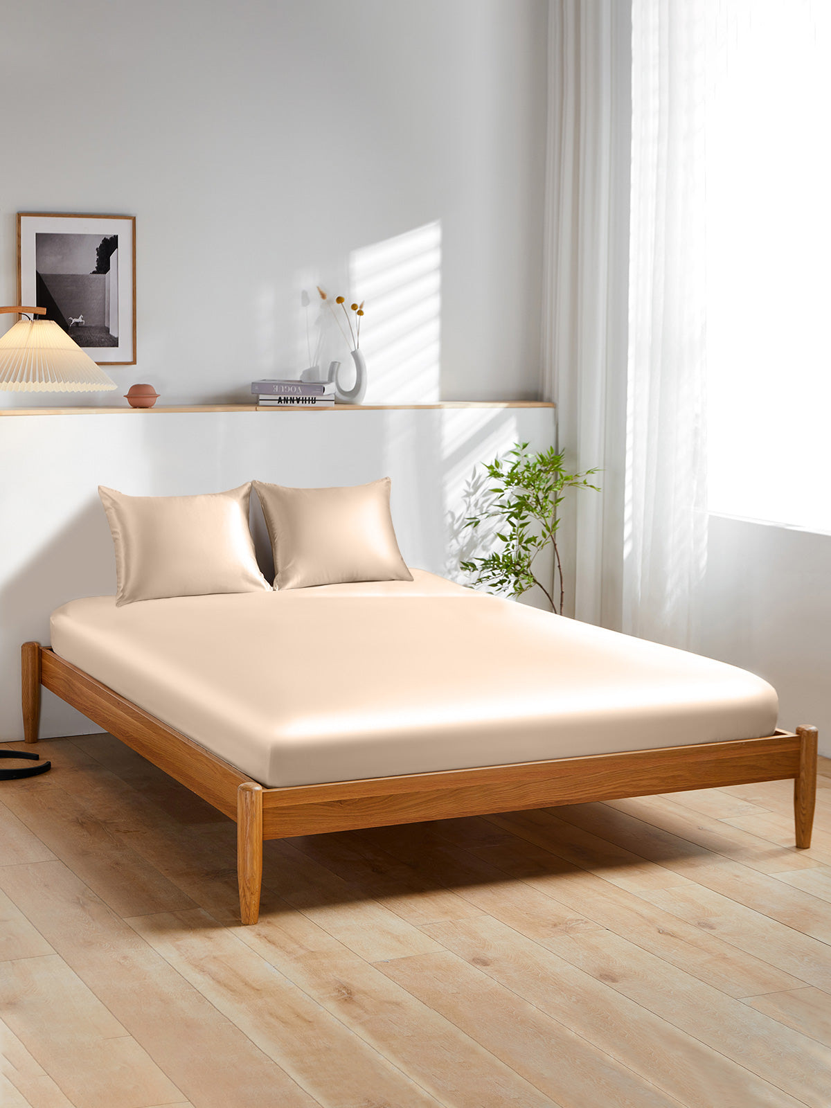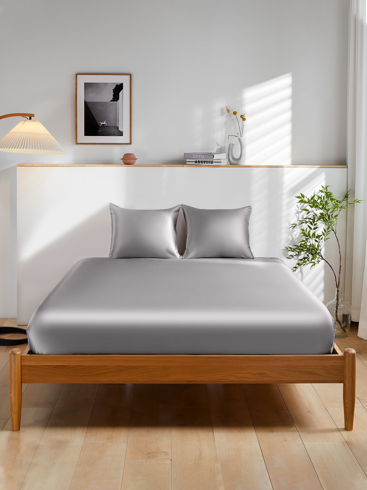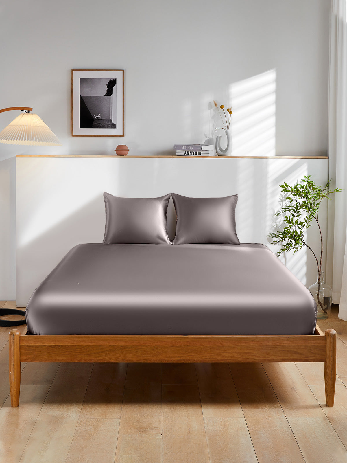 Genießen Sie komplett abgestimmten Seidenkomfort. Unser Set aus einem 19 Momme Spannbettlaken und zwei passenden Kissenbezügen aus 100% Maulbeerseide bietet ein kühlend-weiches Liegegefühl und optimale Atmungsaktivität. In 10 harmonisch aufeinander abgestimmten Farben – für Ihr persönliches Wohlfühlambiente.