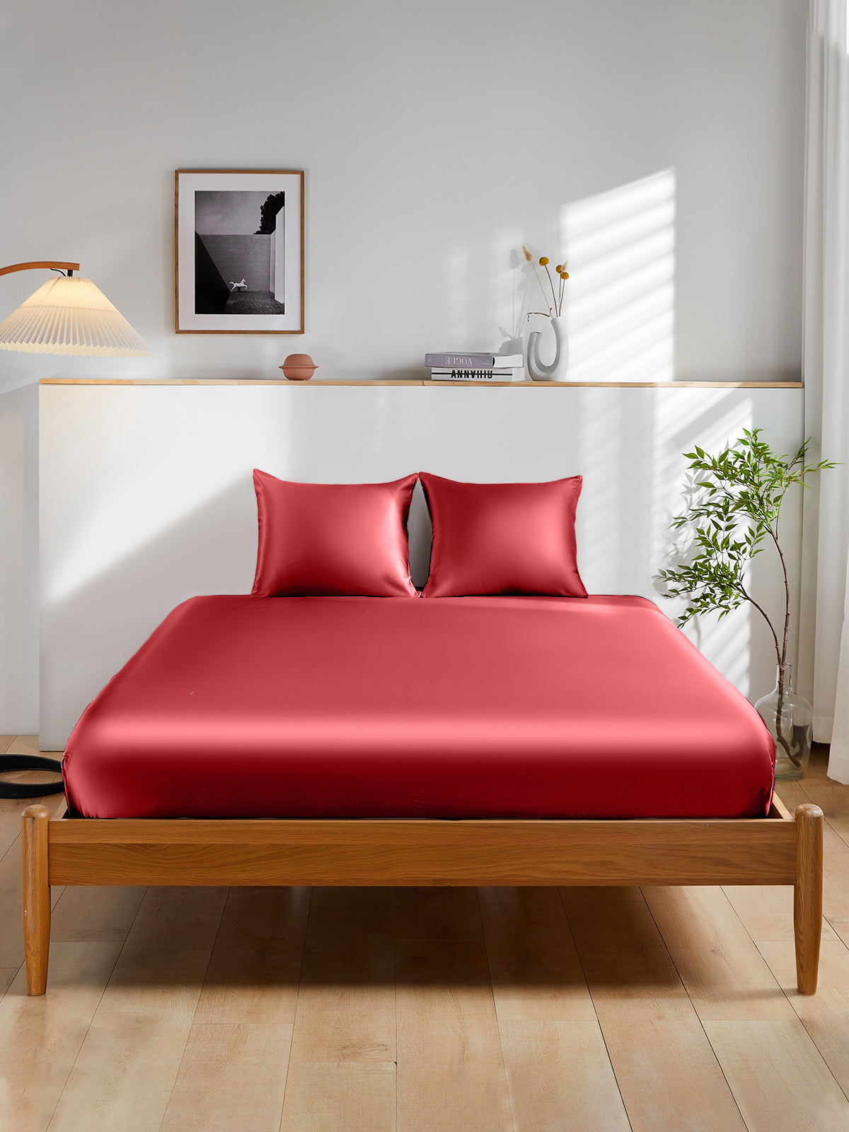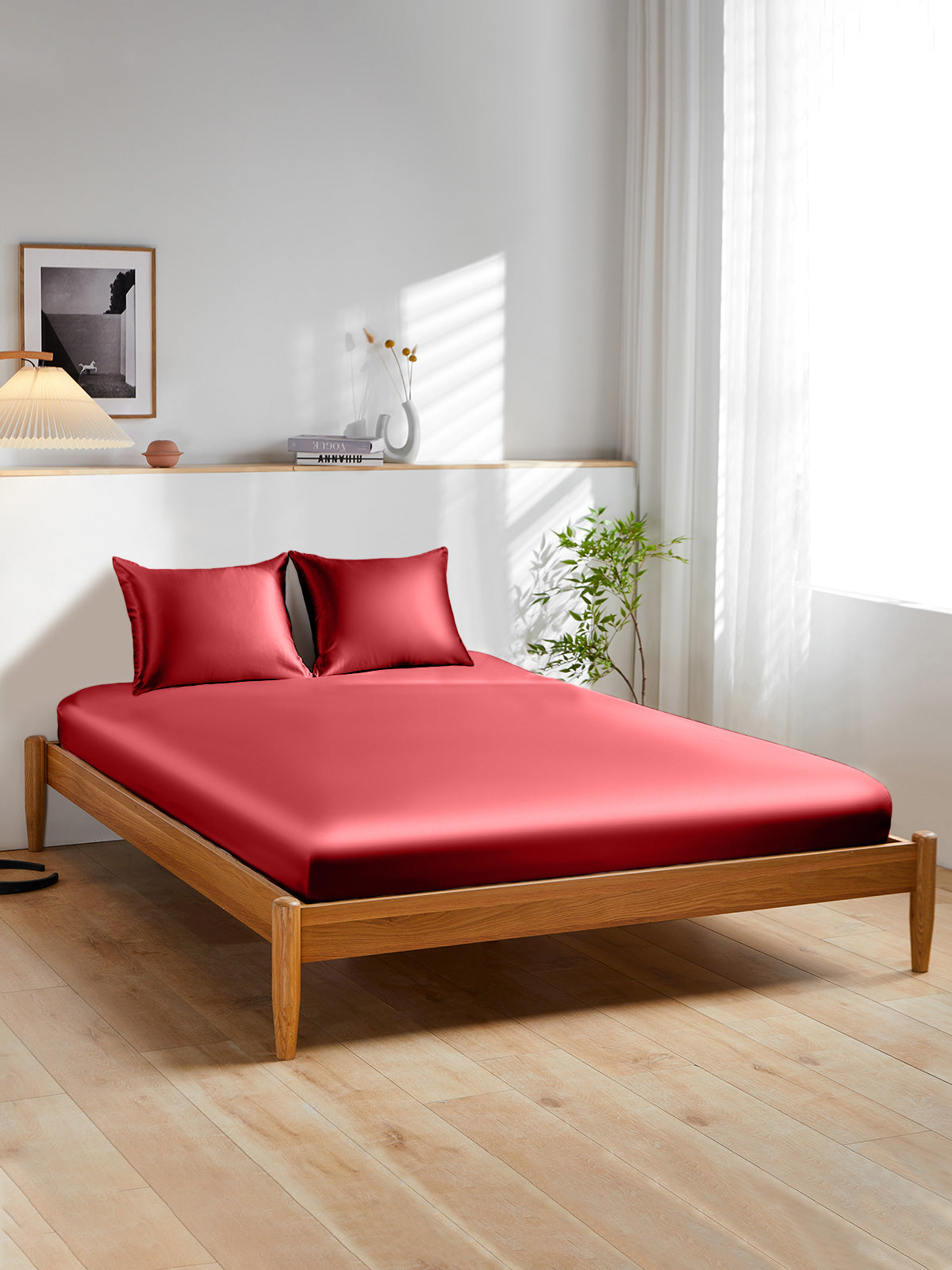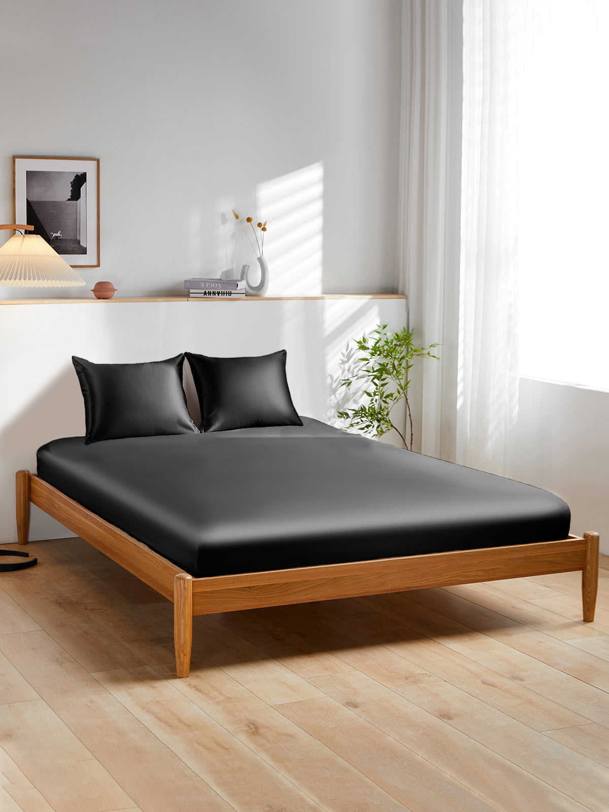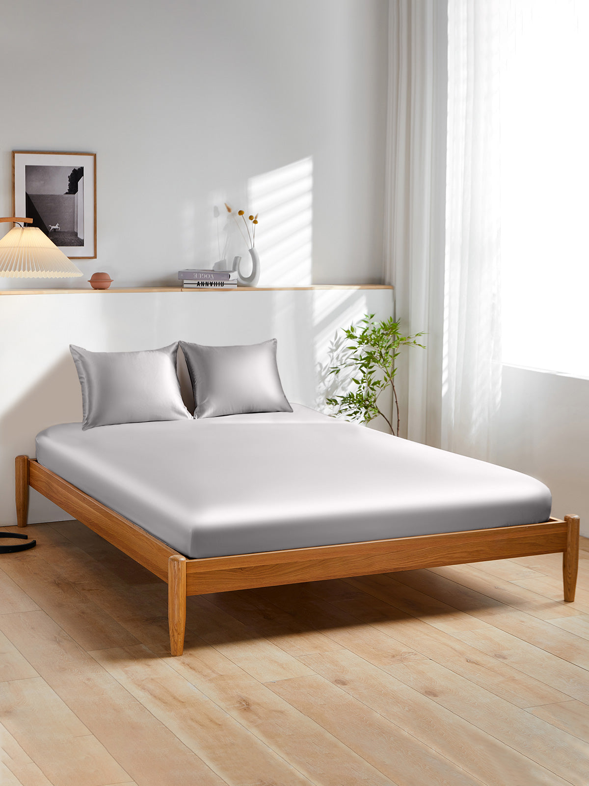 Genießen Sie komplett abgestimmten Seidenkomfort. Unser Set aus einem 19 Momme Spannbettlaken und zwei passenden Kissenbezügen aus 100% Maulbeerseide bietet ein kühlend-weiches Liegegefühl und optimale Atmungsaktivität. In 10 harmonisch aufeinander abgestimmten Farben – für Ihr persönliches Wohlfühlambiente.