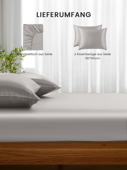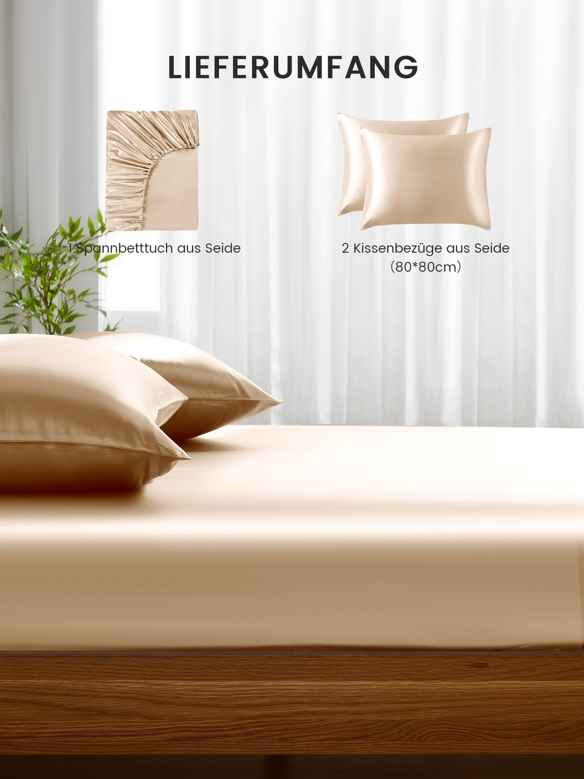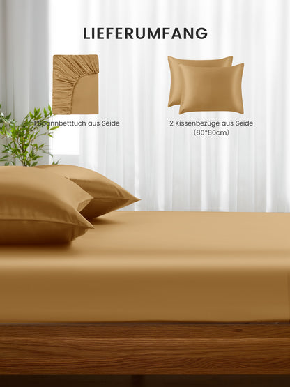 Spannbettlaken Set 19 Momme Seide 3 Teile Square Kissen
