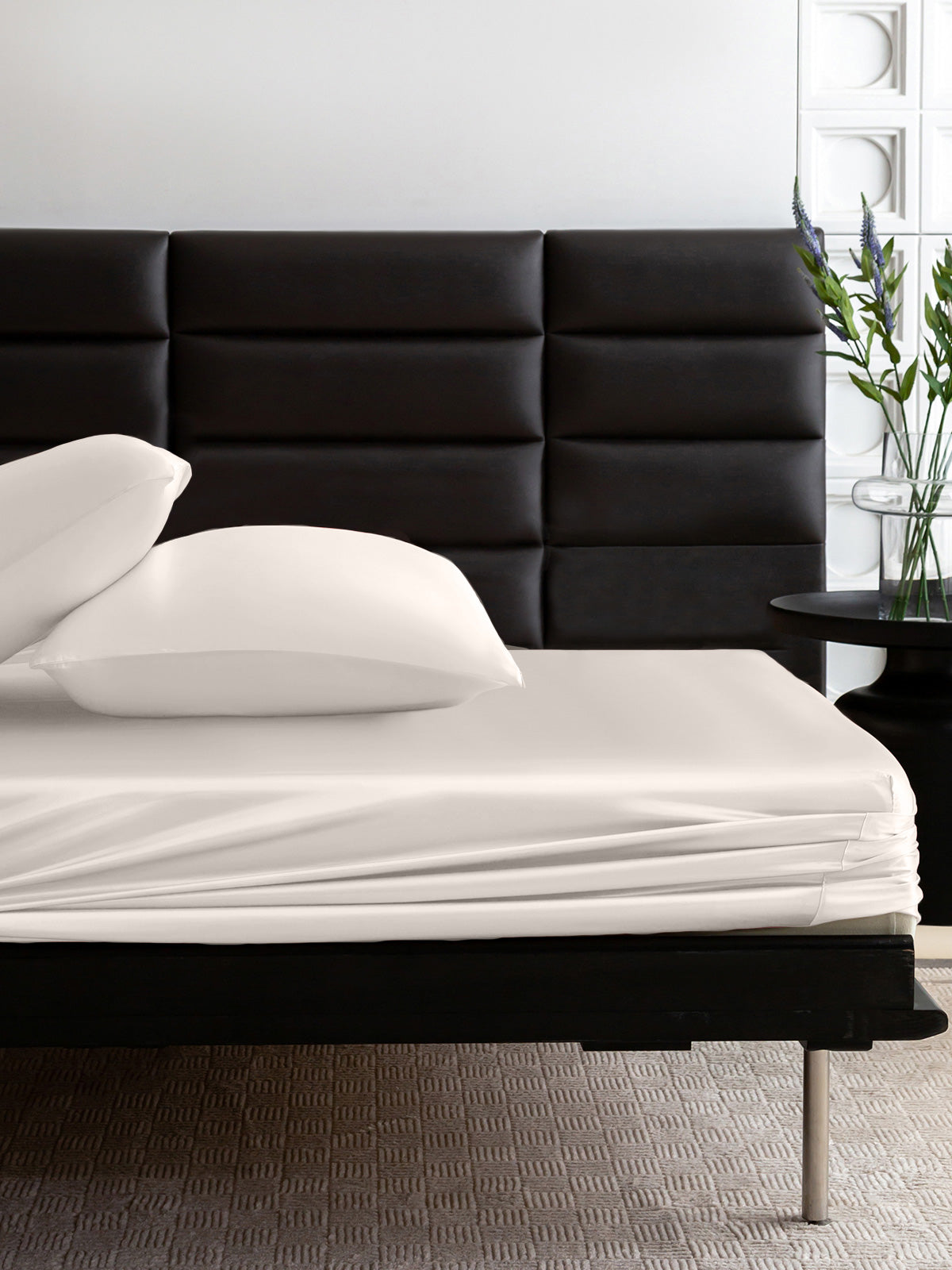 Das Spannbettlaken verfügt über eine rundum elastische, tiefe Tasche, die bis zu einer Tiefe von 30 cm passt.