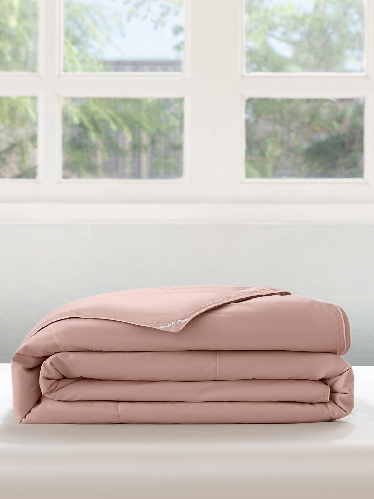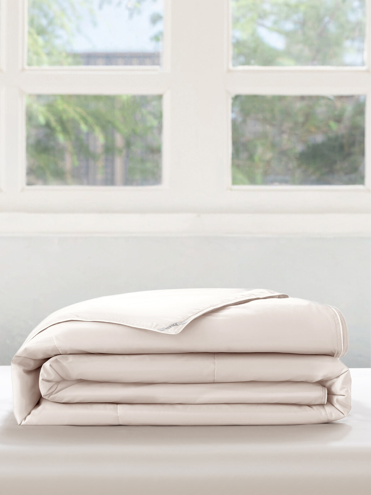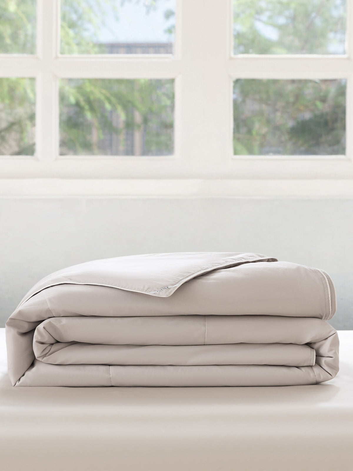 Waschbare Bettdecke mit Seidenfüllung und Paspelkanten mit eleganter Kastensteppung, die ein Verrutschen der Füllung verhindert.
