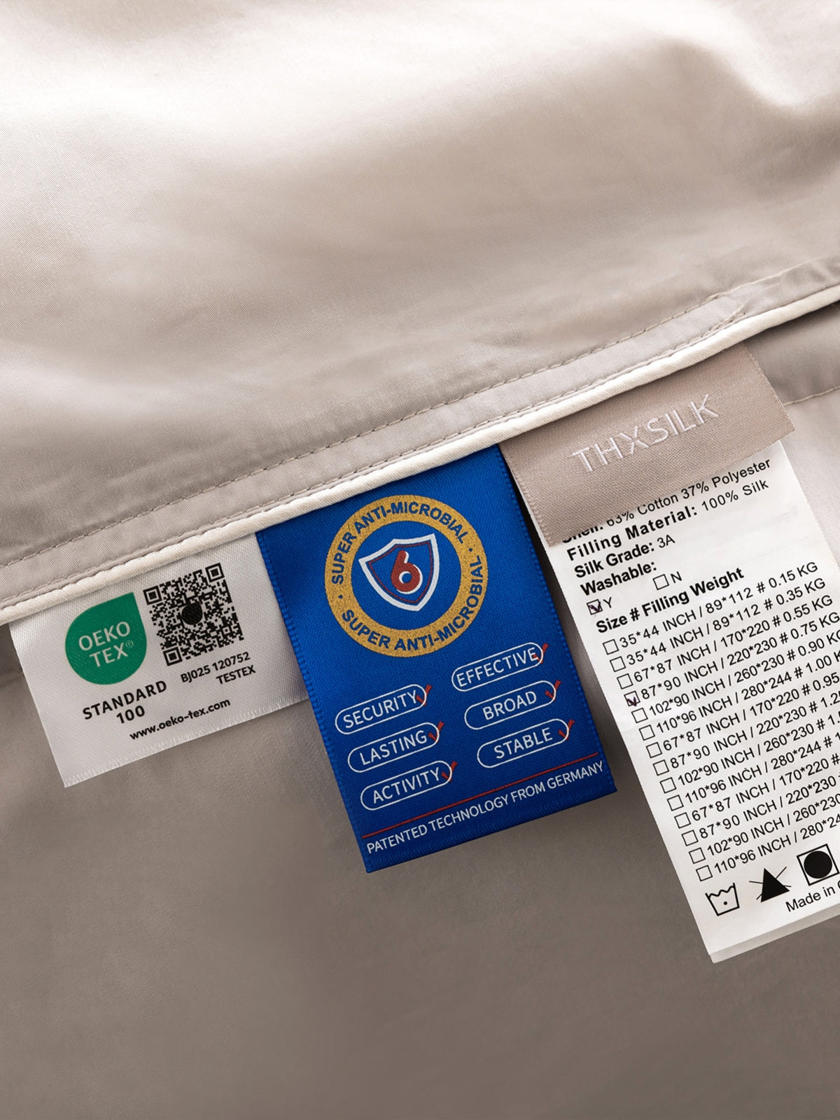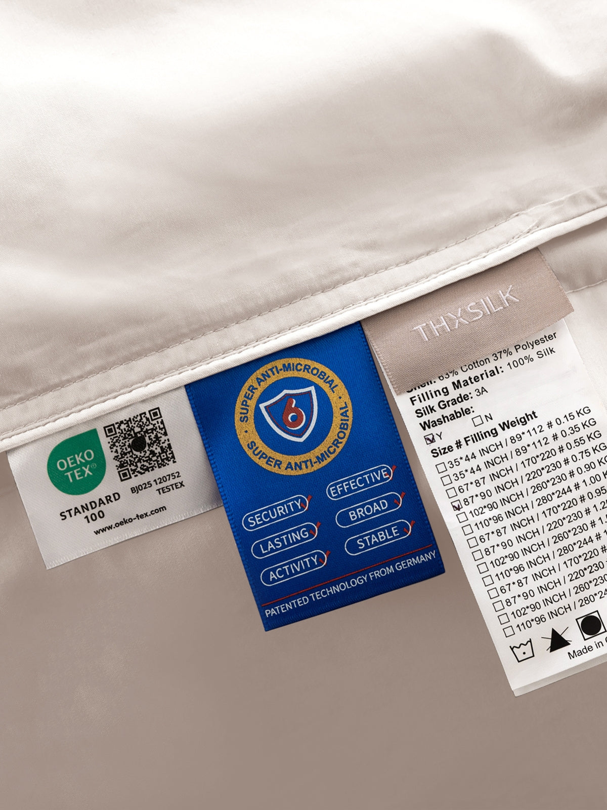 Unsere Bezüge werden sorgfältig gereinigt, sind komfortabel und antiallergisch. Die Weichheit unseres Stoffes in Kombination mit der natürlichen Atmungsaktivität der Seide verhindert die Vermehrung von Hausstaubmilben, sodass auch Allergiker ruhig schlafen können.