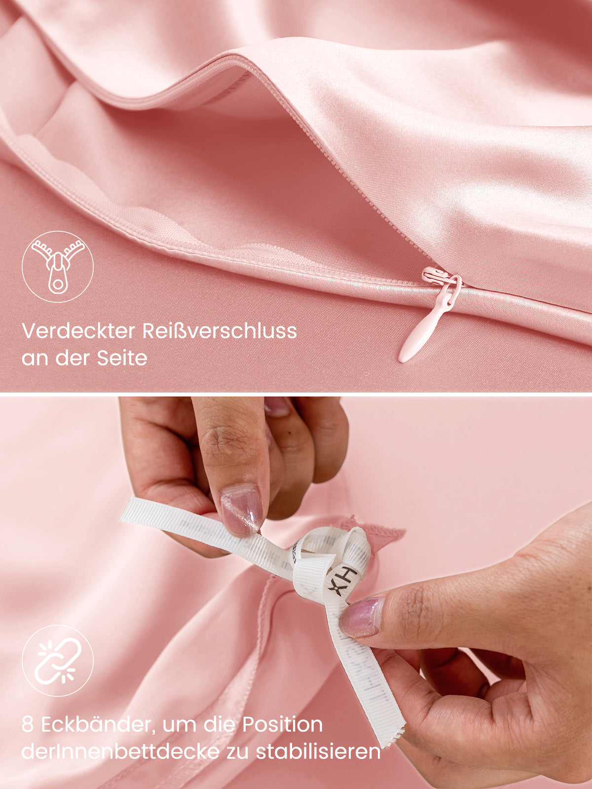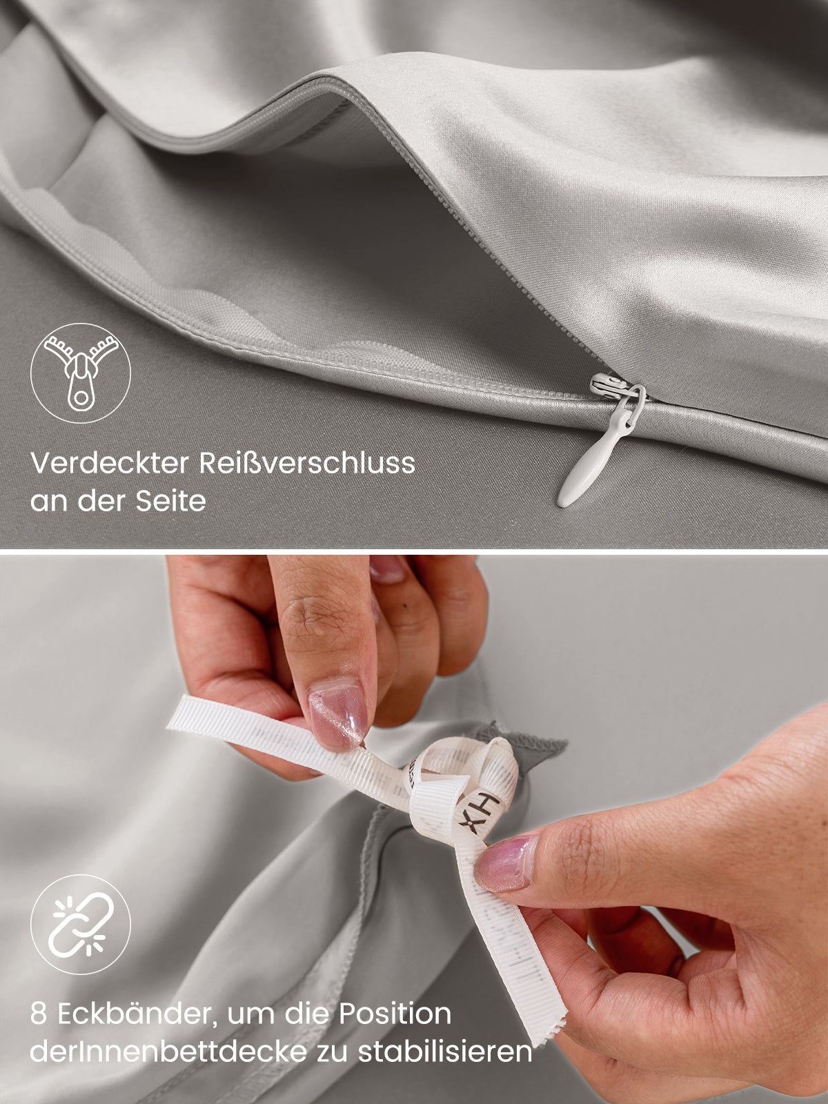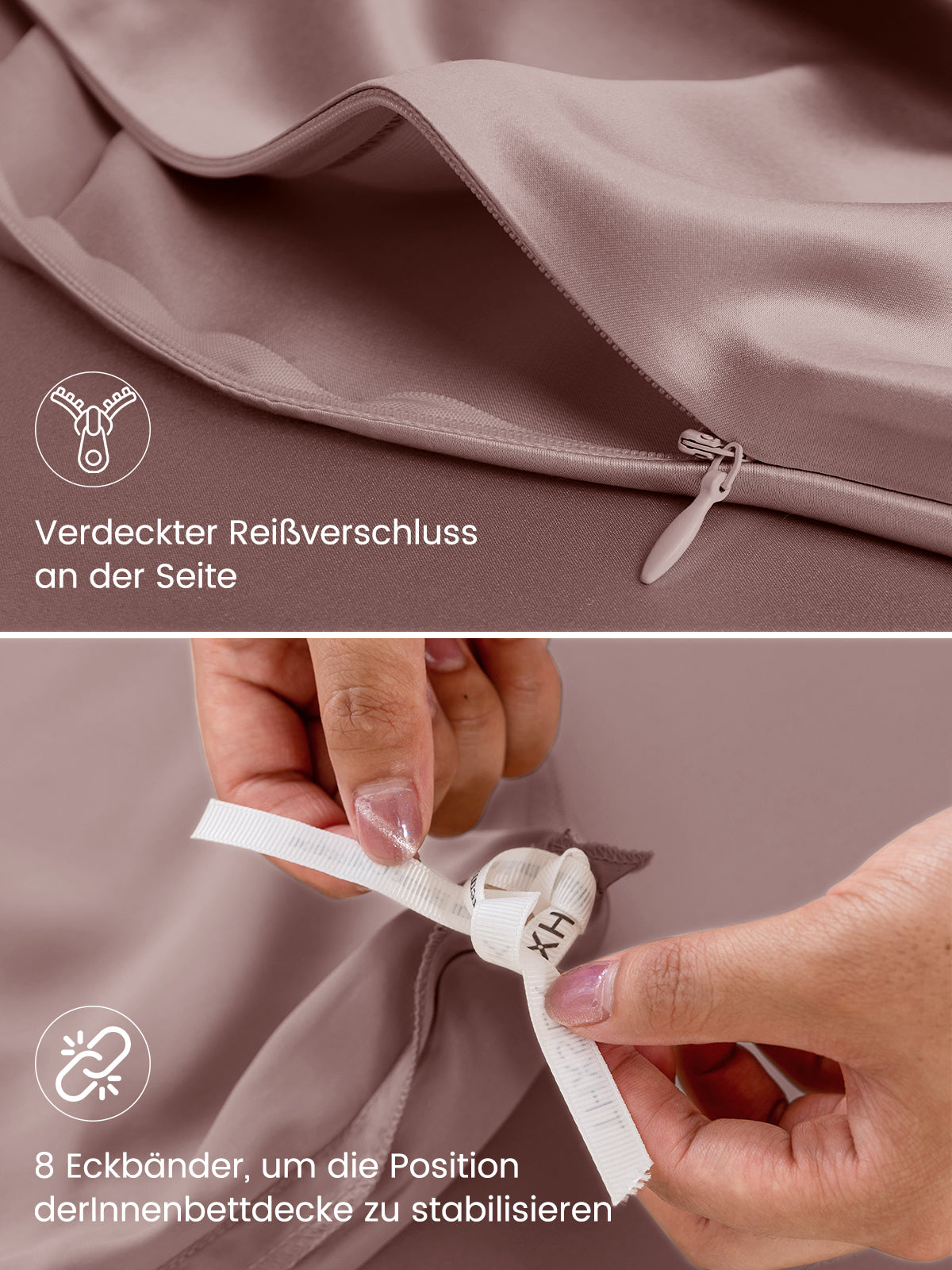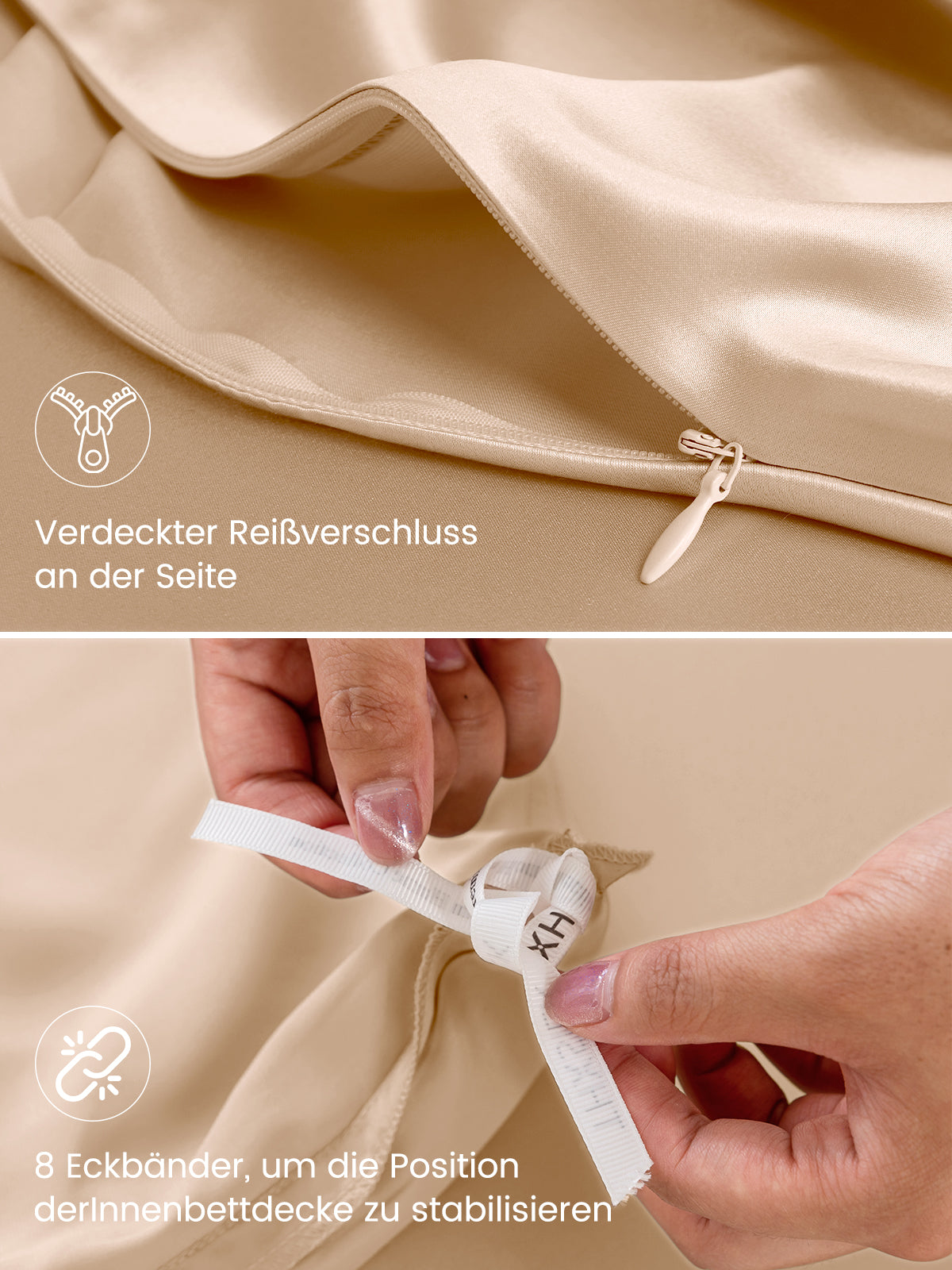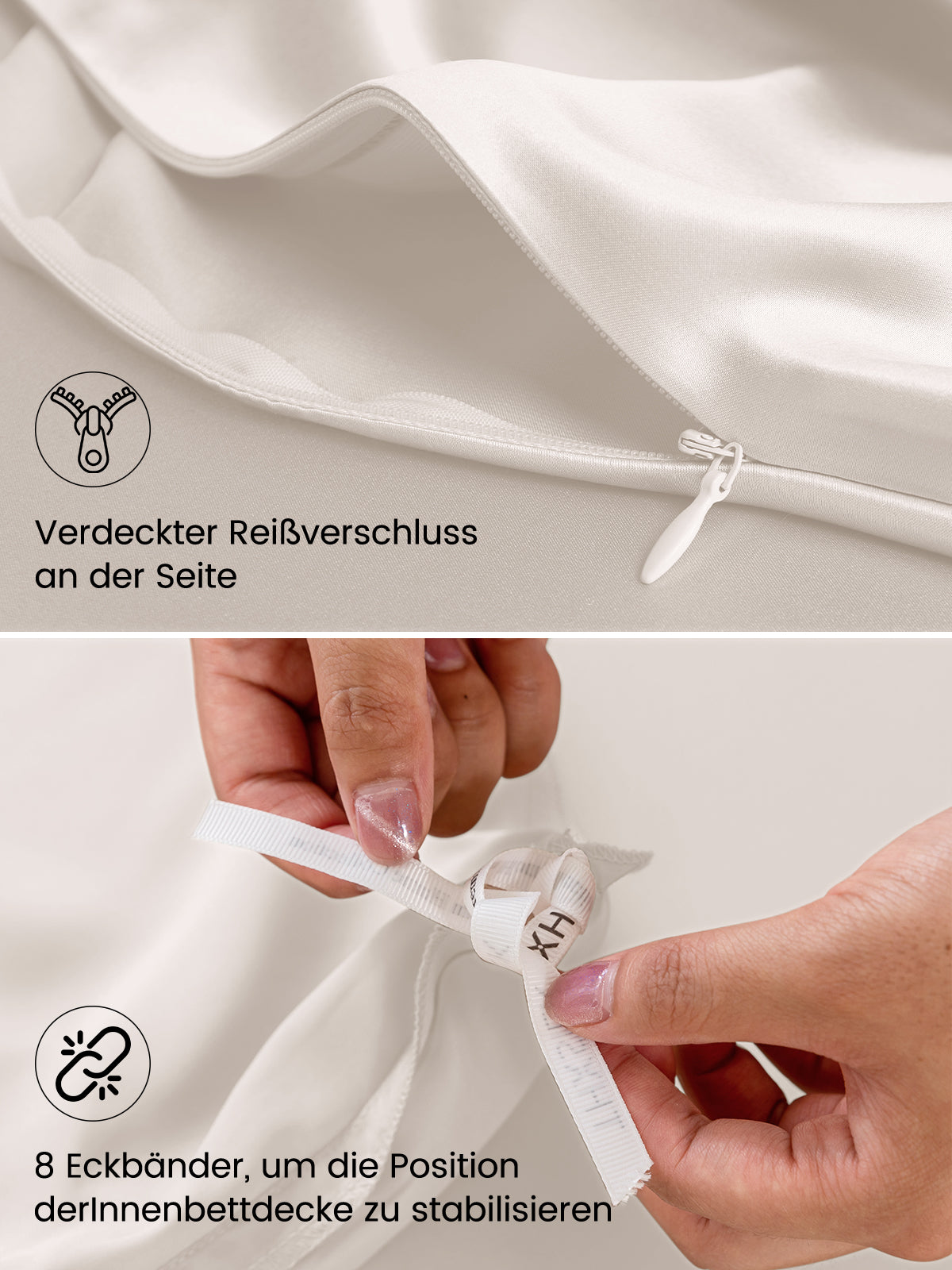 Die dünnere Seidenlage macht diesen Bezug besonders einfach in der Handhabung – schnell trocknend und unkompliziert zu waschen. Einsteigerfreundlich, ohne auf die typischen Vorteile von Seide (hypoallergen, hautfreundlich) verzichten zu müssen.
