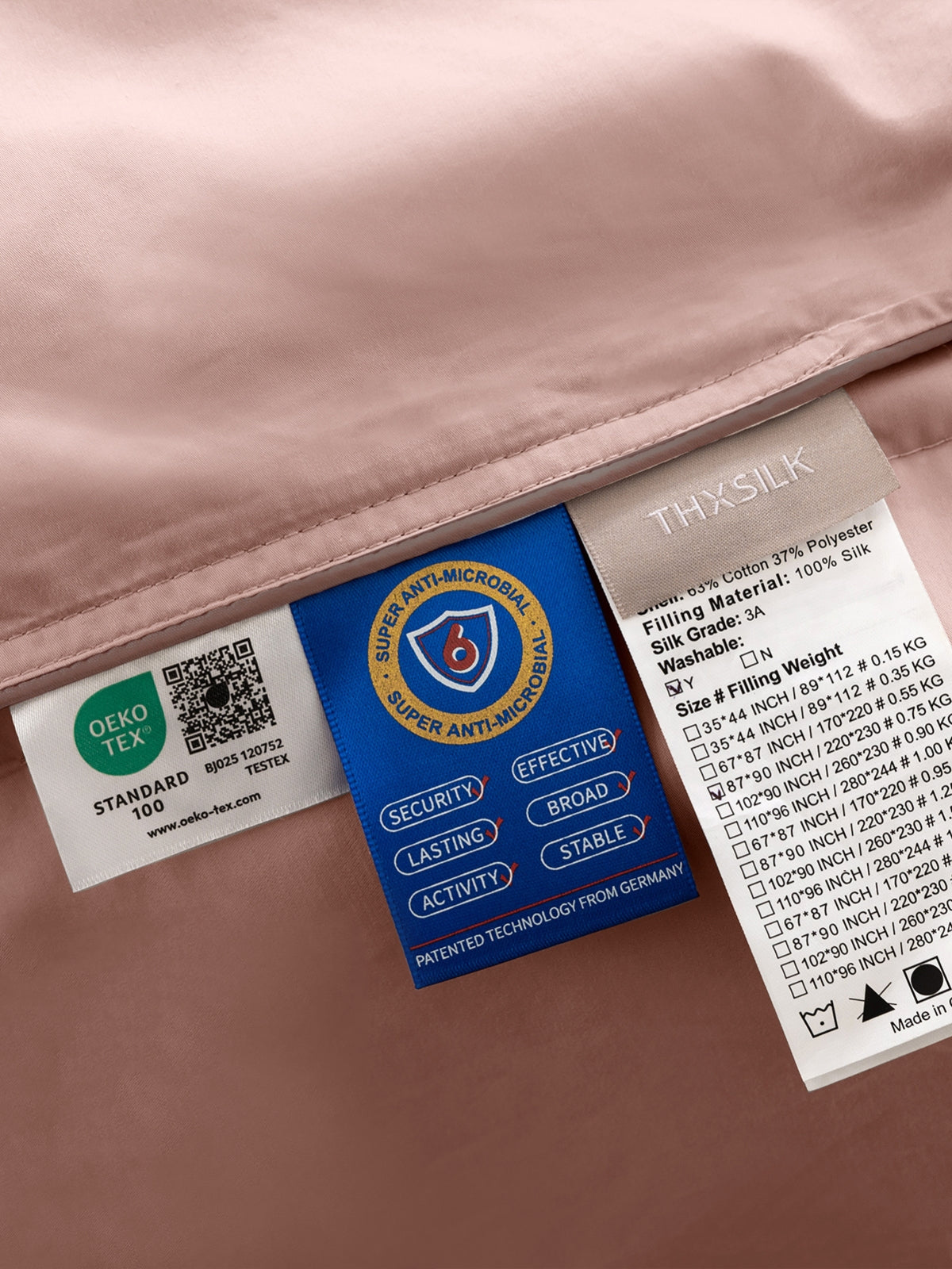• Füllung: 100 % Tussah-Seide, bekannt für ihre besonders belastbaren und atmungsaktiven Eigenschaften.